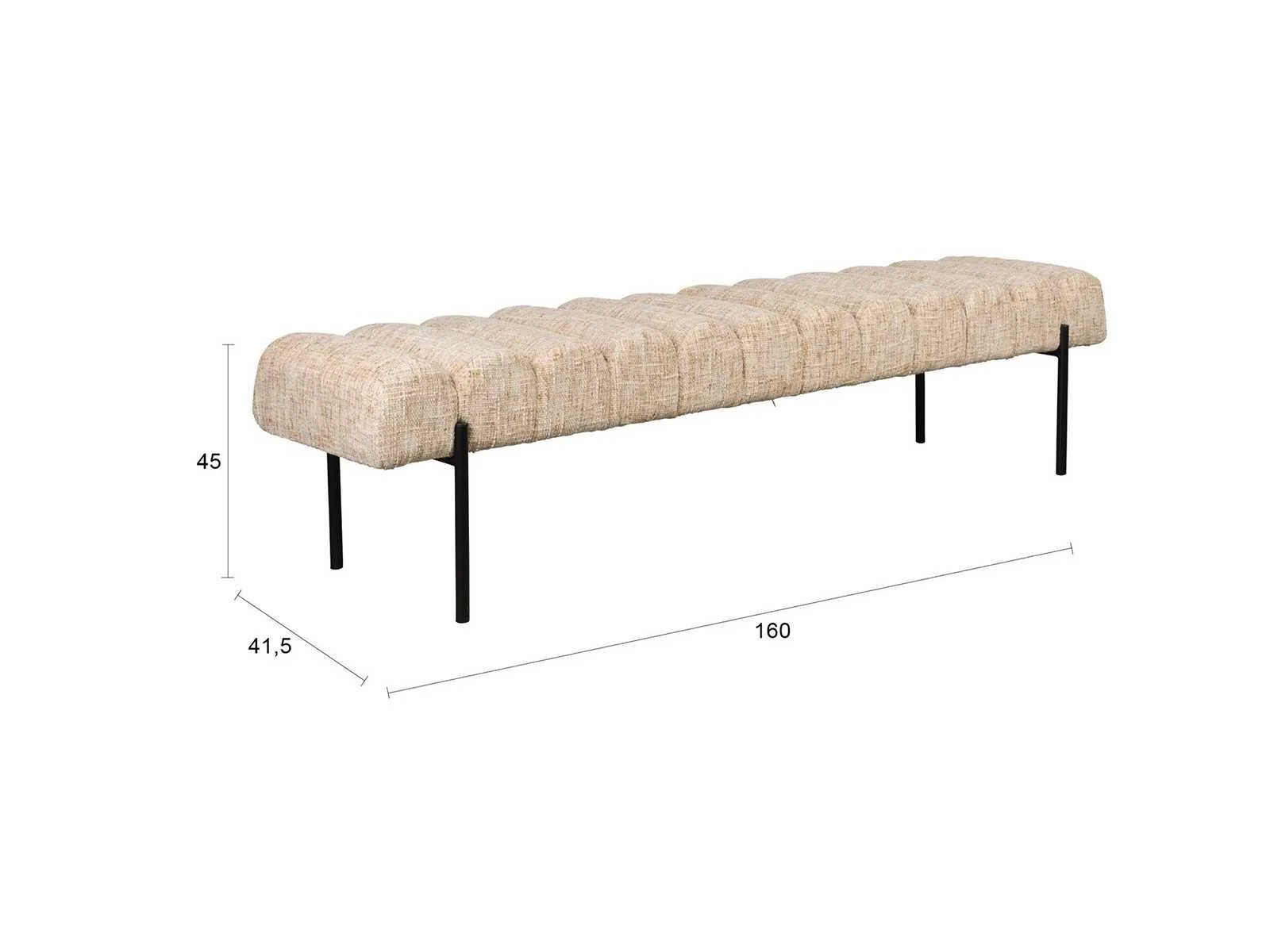 Merk: White label living Model: Jethro Kleur: Beige Gewicht: 13.50kg Breedte: 160cm Hoogte: 45cm Zithoogte: 41cm Diepte: 42,5cm Materiaal: Metaal, Polyester