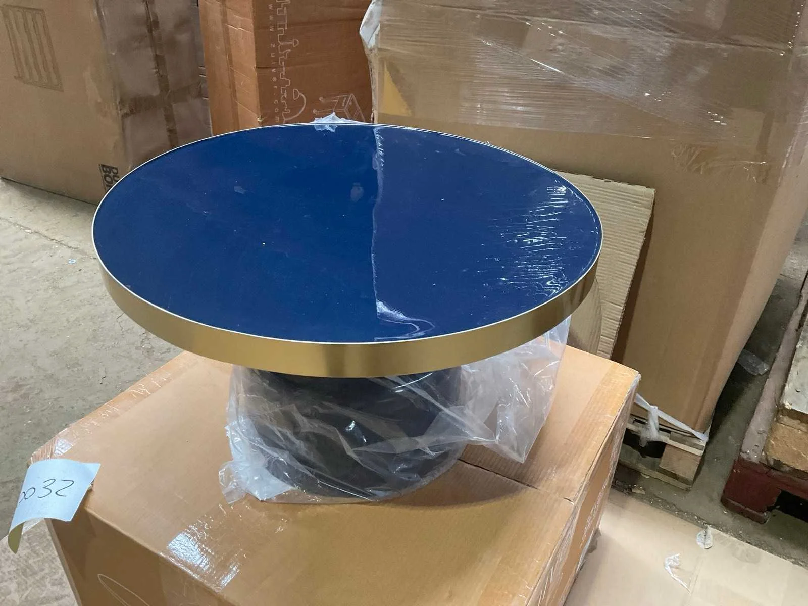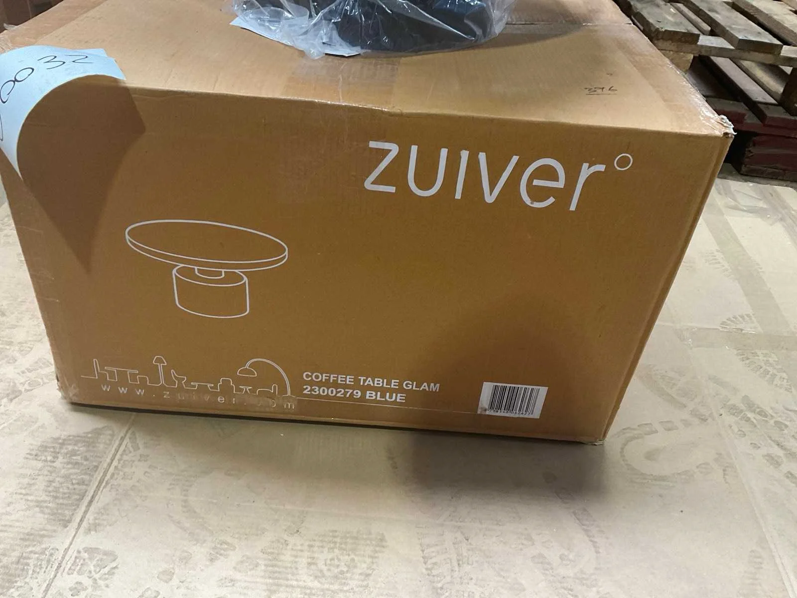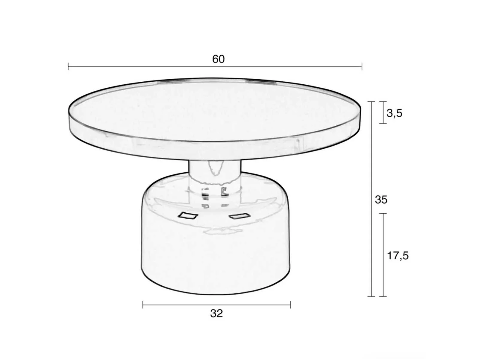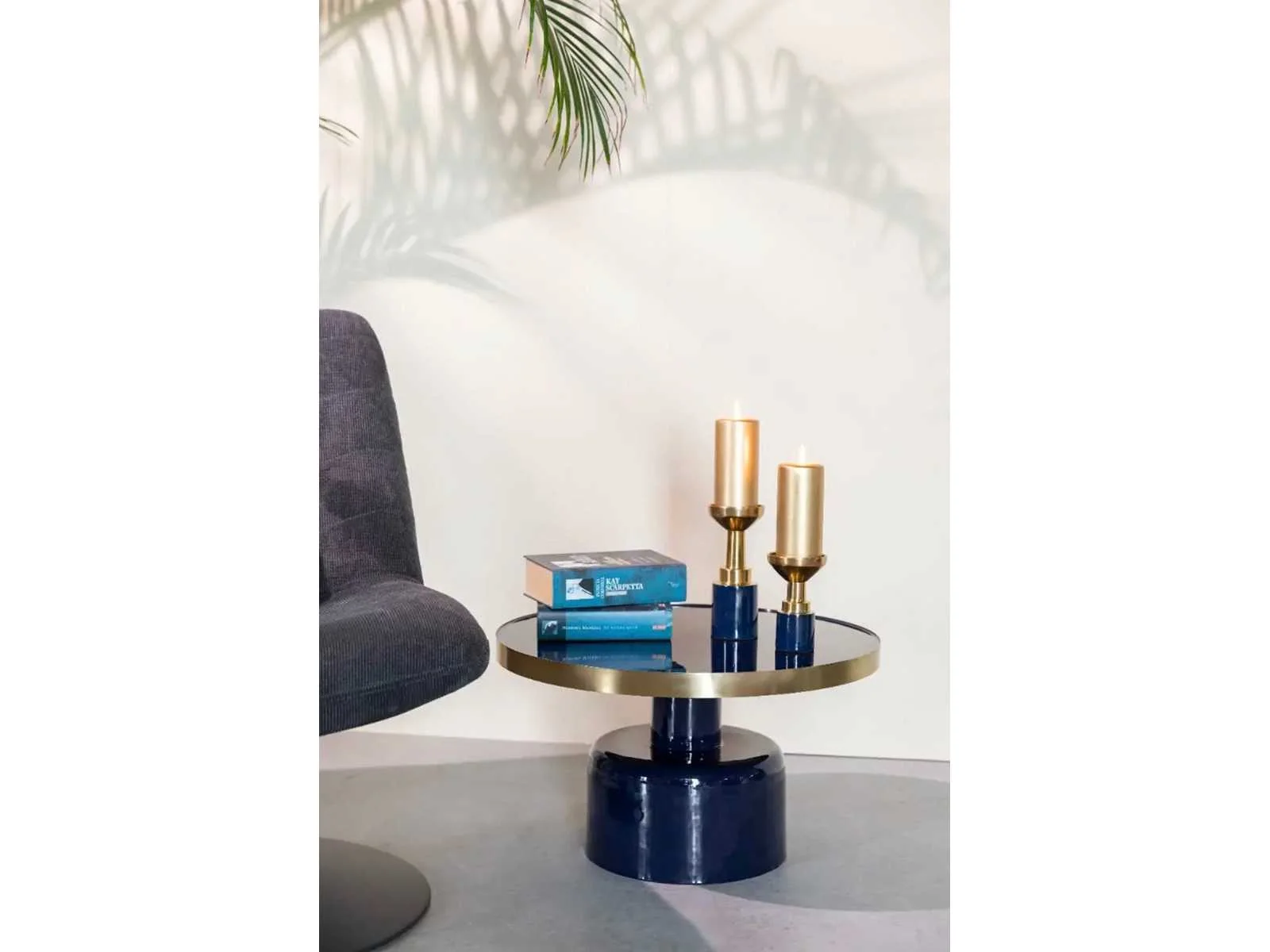 Merk: Zuiver Model: Glam Vorm: Rond Kleur: Blauw, Goud Gewicht: 8.82kg Lengte: 60cm Breedte: 60cm Hoogte: 35cm Materiaal: Ijzer / staal