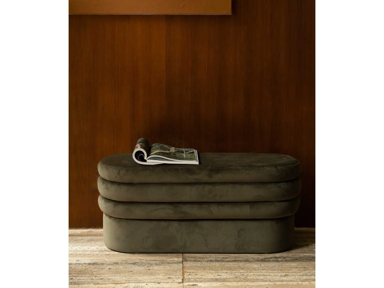 Ongebruikt in verpakking Merk: Dutchbone Model: Aditi Kleur: Groen Gewicht: 9.70kg Breedte: 93cm Hoogte: 45cm Zithoogte: 45cm Diepte: 35cm Materiaal: Polyester