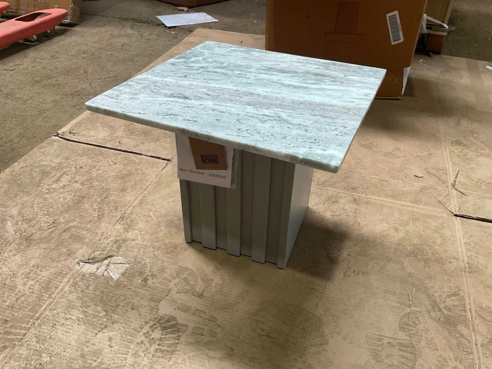 Merk: Dutchbone Model: Clayton Vorm: Vierkant Kleur: Grijs Gewicht: 10.65kg Lengte: 40cm Breedte: 40cm Hoogte: 35cm Materiaal: Marmer