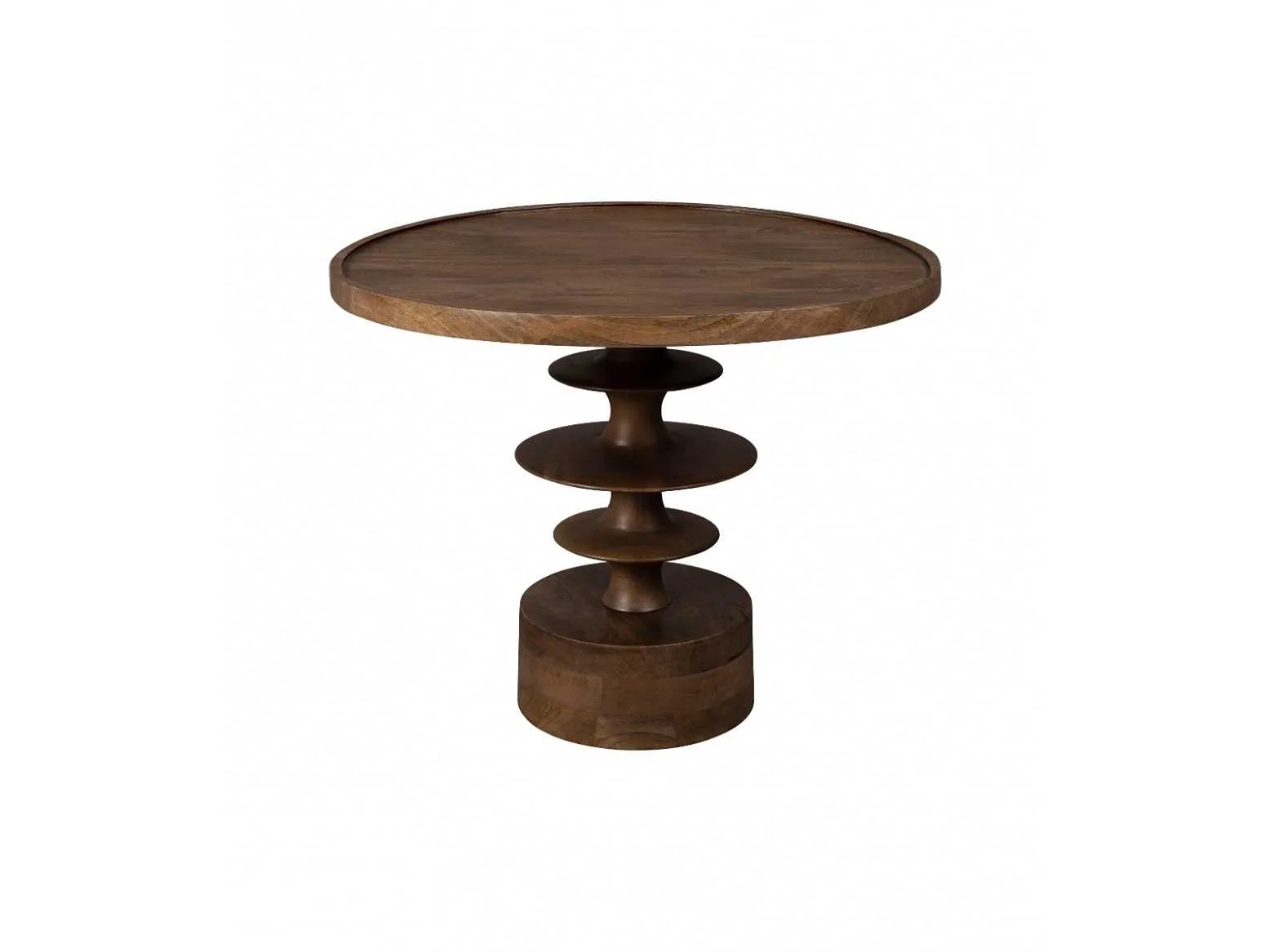 Merk: Dutchbone Model: Cath Vorm: Rond Kleur: Walnut Gewicht: 6kg Lengte: 66cm Breedte: 66cm Hoogte: 50cm Materiaal: Mango hout