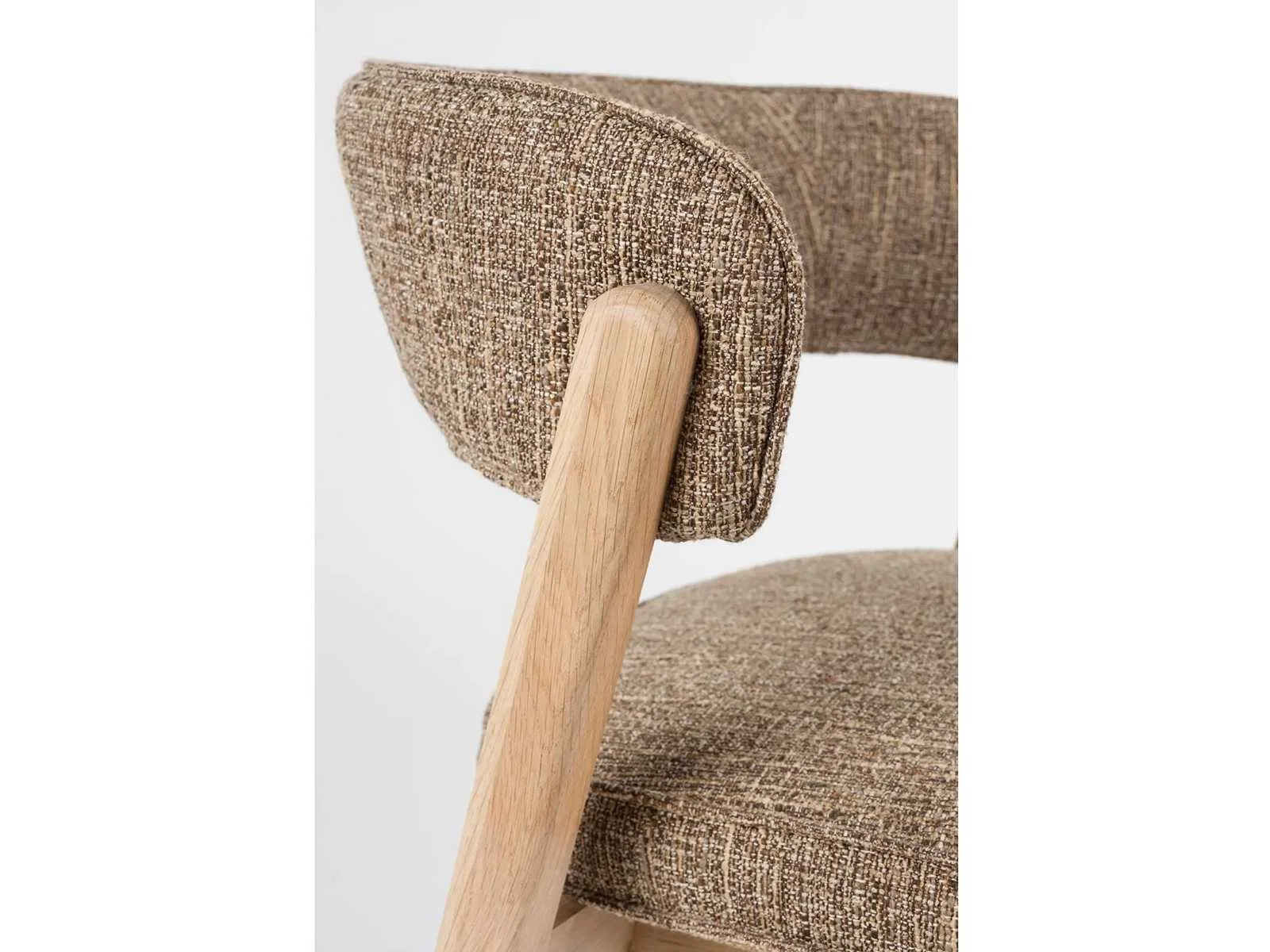 Merk: Zuiver Model: Bright Kleur: Bruin Gewicht: 6kg Lengte: 57cm Breedte: 58cm Hoogte: 77cm Zithoogte: 49cm Materiaal: Eikenhout, Polyester Diepte: 49cm