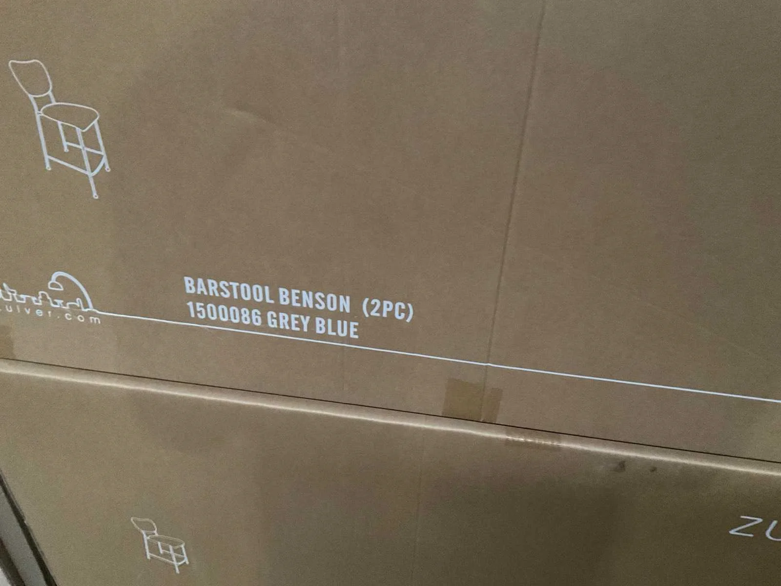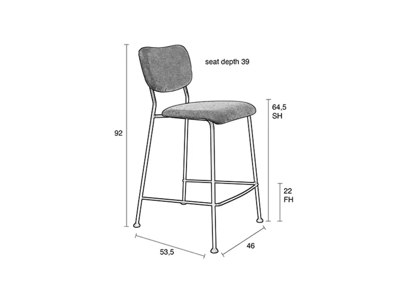 Merk: Zuiver Model: Benson Kleur: Grijs/Blauw Gewicht: 6.2kg Lengte: 54cm Breedte: 46cm Hoogte: 92cm Zithoogte: 64,50 Materiaal: Staal, Nylon, Polyester
