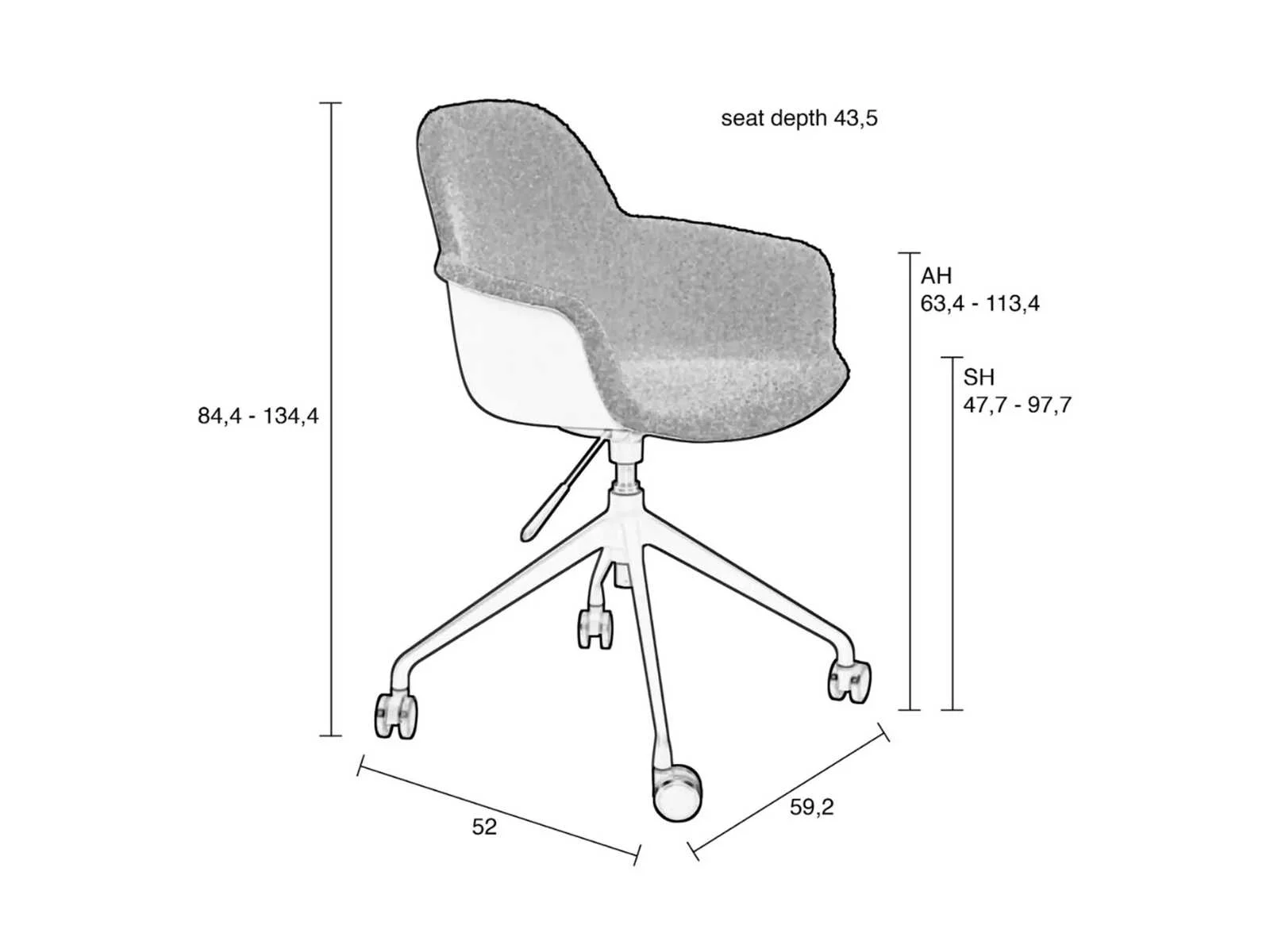 Merk: Zuiver Type: Albert kuip Kleur: Taupe Gewicht: 6.45kg Breedte: 59cm Hoogte: 84cm Zithoogte: 47.4-51.5cm Diepte: 43.5cm Materiaal: Aluminium, Polyester, Polypropyleen