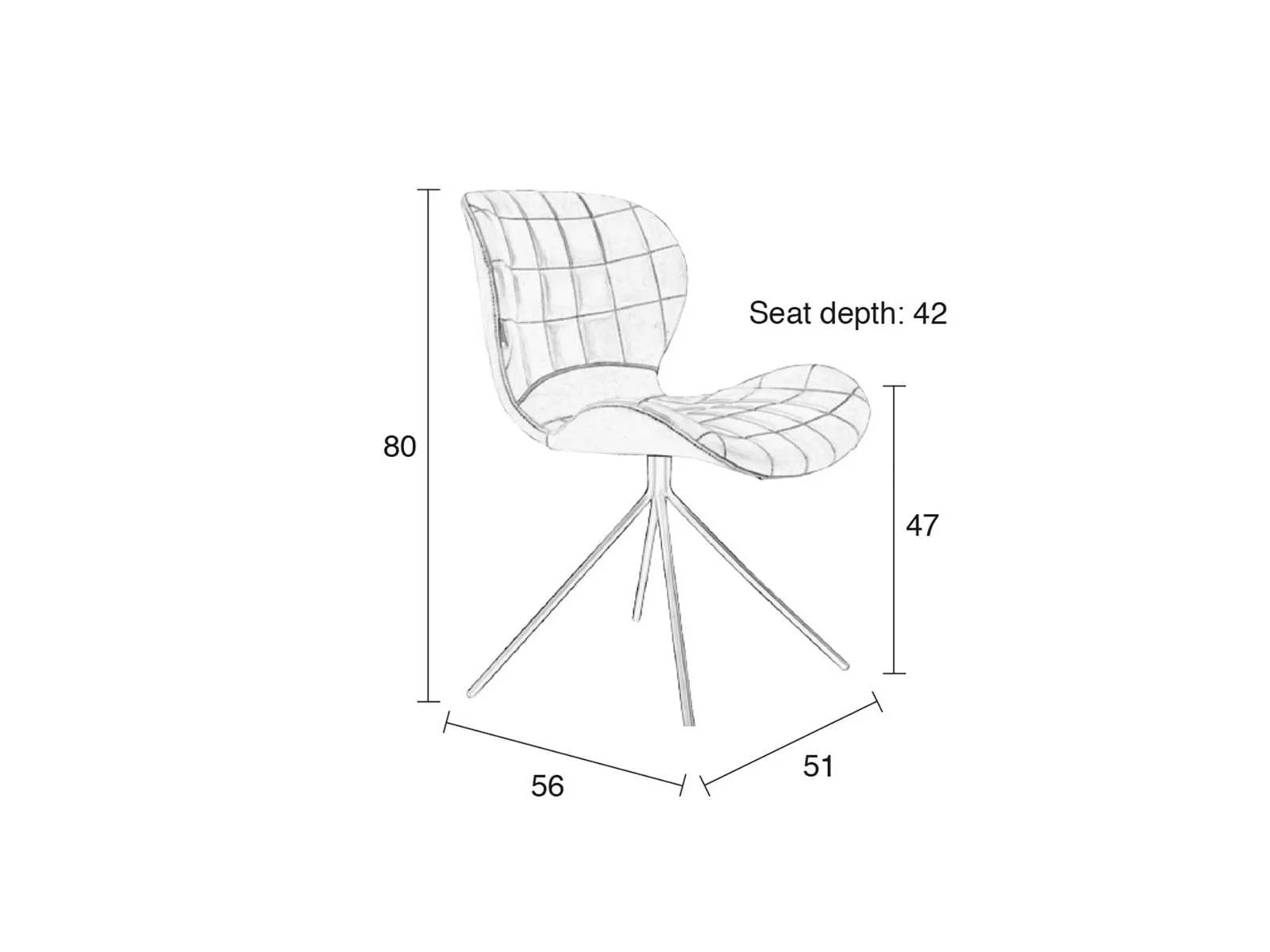 Merk: Zuiver Model: OMG LL Kleur: Zwart Gewicht: 6.85kg Lengte: 56cm Breedte: 51cm Hoogte: 80cm Zithoogte: 47cm Diepte: 42cm