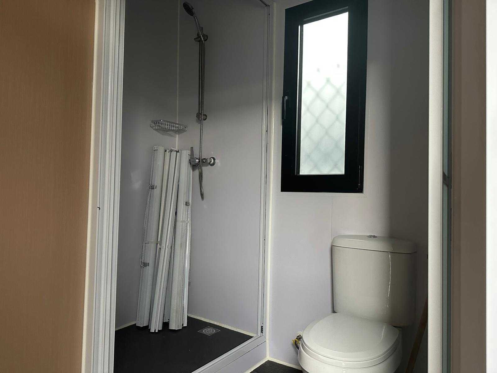 Voorzien van 1 woning; 1 badkamer; 1 toilet; 1 keuken blok; riool, water en stroom aansluiting allemaal voorbereid dus makkelijk aan te sluiten; meterkast; deur stopper; lepel gaten; gebruikt; Koper dient deze zelf op te laden met een kraanwagen; zonder kantine tafel en stoelen; Bouwjaar: 03-2024 Eigen gewicht: 3780kg