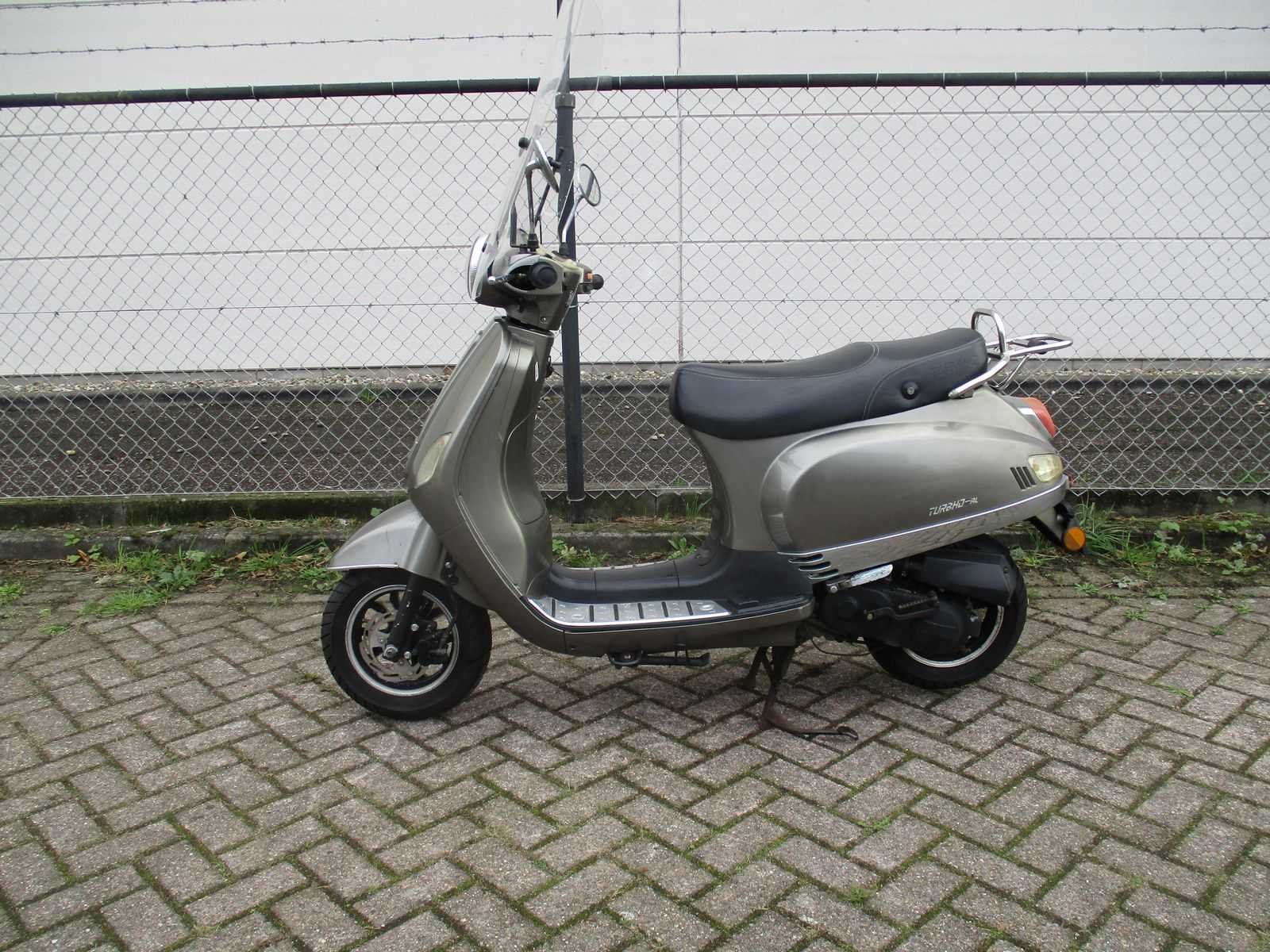 Snorscooter met 2 sleutels inclusief hoog windscherm, achter rek en aluminiumtreeplankjes. Motor loopt, uitlaat is lek. Verdere staat van onderhoud onbekend. Merk: Turbho Model: Snorscooter Type: RL-50 Riva Handelsbenaming: RL-50 Snelheid: 25km/h Kenteken: DJF-45-V Datum eerste toelating: 2017-03-07 Bouwjaar: 07-03-2017 Transmissie: automaat Brandstof: benzine Kleur: niet van toepassing Afgelezen kilometerstand: 15138km