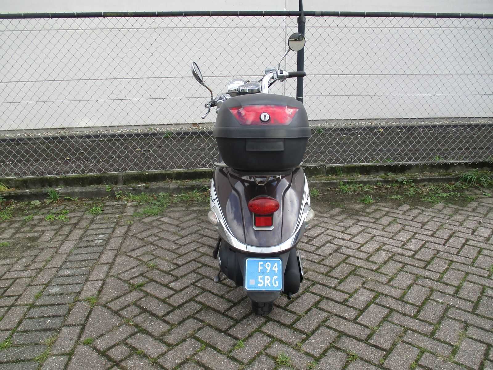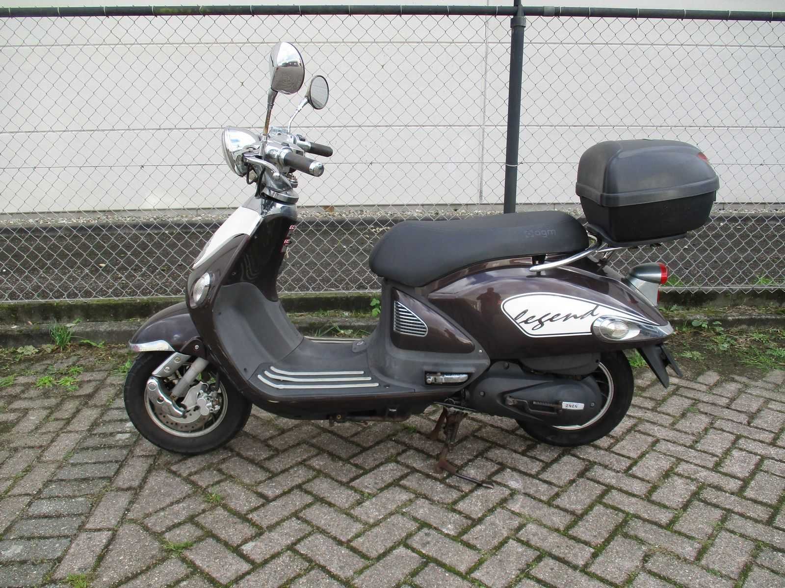 Snorscooter met 2 sleutels inclusief top koffer, scooter van 1 ste eigenaar. Motor loopt, uitlaat recent vervangen. Merk: AGM Znen Model: Snorscooter Type: Legend (ZN50QT-E5) Handelsbenaming: ZN50QT-E5 Snelheid: 25km/h Kenteken: F-945-RG Datum eerste toelating: 2013-08-15 Bouwjaar: 15-08-2013 Transmissie: automaat Brandstof: benzine Kleur: niet van toepassing Afgelezen kilometerstand: 12306km