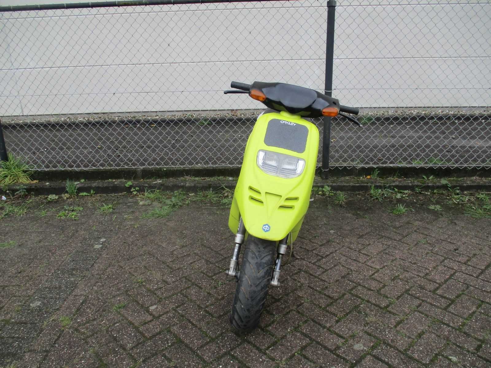 Bromscooter met 1 sleutel. Scooter heeft enige tijd stilgestaan, motor kunnen starten m.b.v. startpilot, verdere technische en onderhoud staat onbekend. Merk: Piaggio Typhoon 2 Takt Model: Bromscooter Type: Oldtimer Snelheid: 45km/h Kenteken: Eu Buitenlands kenteken vin: 8743 Bouwjaar: 28-04-1993 Transmissie: automaat Brandstof: benzine Kleur: n.v.t Afgelezen kilometerstand: 16502km