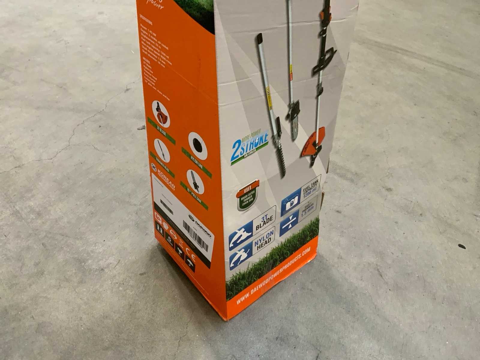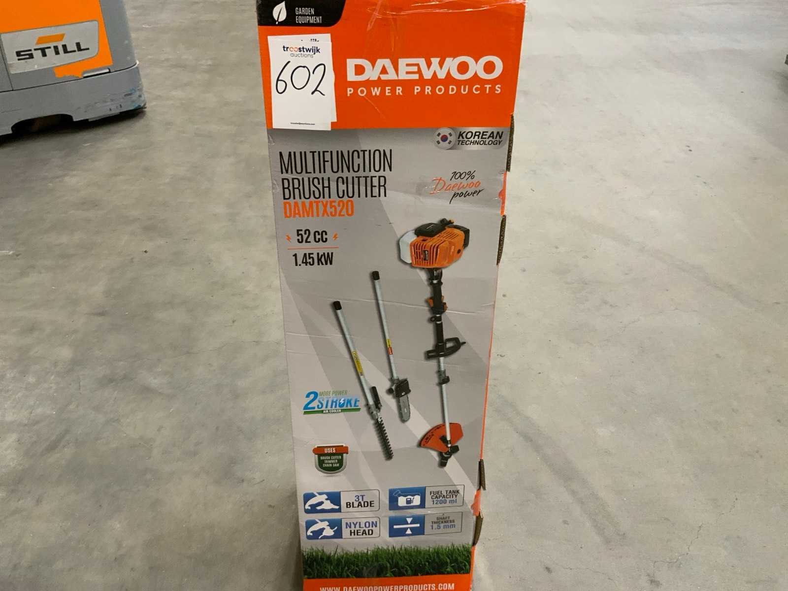 Werking onbekend; defect; Power 1.45kw; 2 takt; 52cc; tankcapaciteit 1200ml; Max 9500 rpm; shaft thickness 1.5mm; shaft diameter 26mm; 3T blade; nylon trimmer; trimmer head; easy starter; belt; 10" pole saw, chain and bar; Merk: Daewoo Product type: DAMTX520 Kleur: grijs