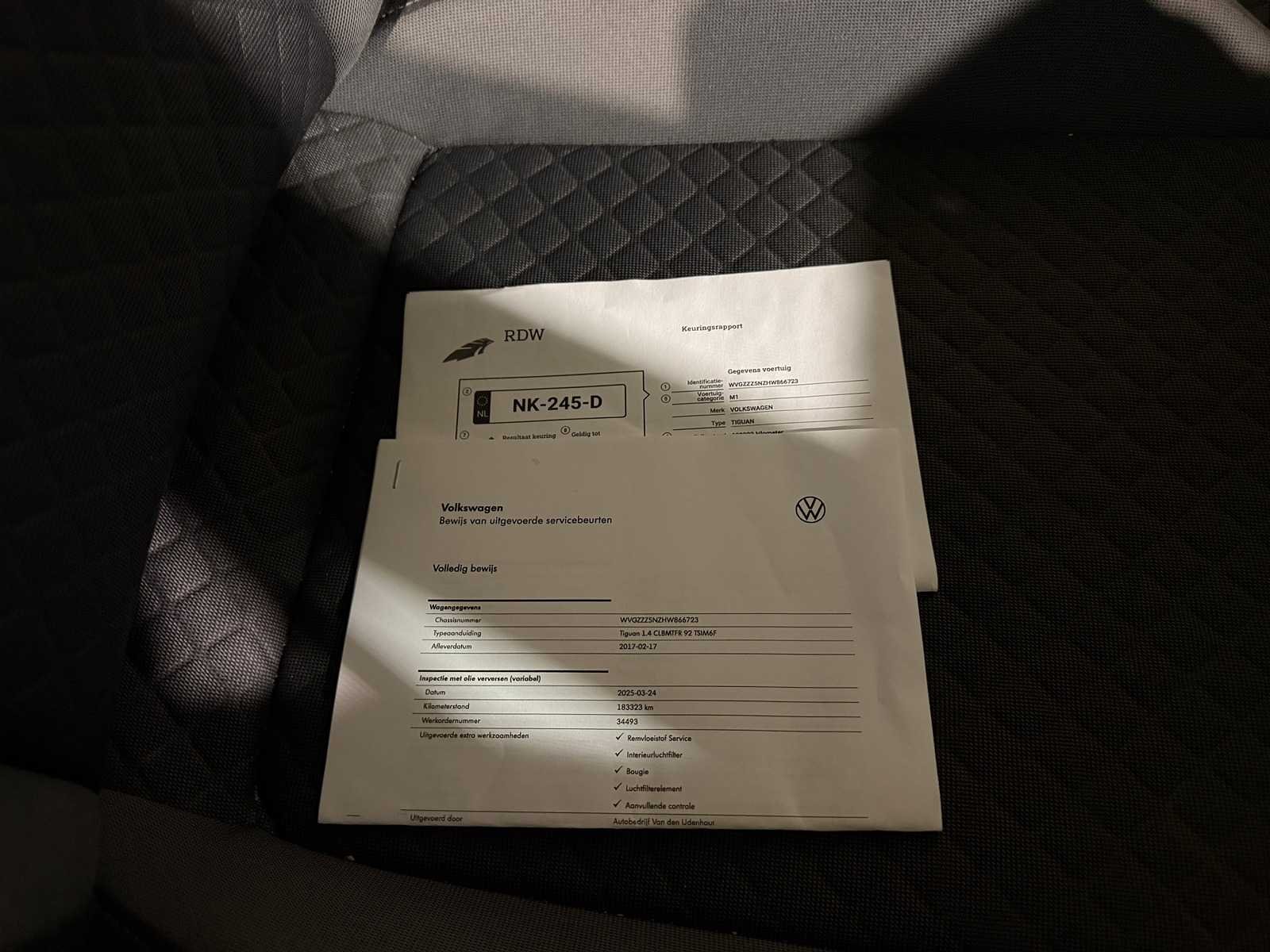 Kenteken: NK-245-D Merk: Volkswagen Model: Tiguan Type: 1.4 TSI Con. Series Afgelezen kilometerstand: 193634km Cilinderinhoud: 1395cc Vermogen (kW): 92kW Brandstof: Benzine Chassisnummer: WVGZZZ5NZHW866723 Laadvermogen: 0kg NAP status: Logisch Datum eerste toelating: 2017-02-17 Datum eerste toelating (NL): 2017-02-17 APK vervaldatum: 2026-03-24 Aantal zitplaatsen: 5 Kleur: grijs Transmissie: handgeschakeld Stuurwiel: links Emissieklasse: 6 Aantal deuren: 5 Aantal sleutels: 2 Ledig gewicht: 1390kg Bruto BPM (NL): 7296€ Rest BPM: 1570€ Aantal cilinders: 4 Carrosserie: stationwagen Onderhoudshistorie: gedeeltelijk aanwezig Carfax Link: https://was.carfax.eu/v0/api/ccdid/5100016408/svc/201/vinreg/NK245D/checksum/eyJhbGciOiJIUzI1NiIsInR5cCI6IkpXVCJ9.eyJleHAiOjE3NjY5OTc3Njl9.iazY6QjhP063Hrrk882ph1ltycPyNbfU3vELrQHUsdE
