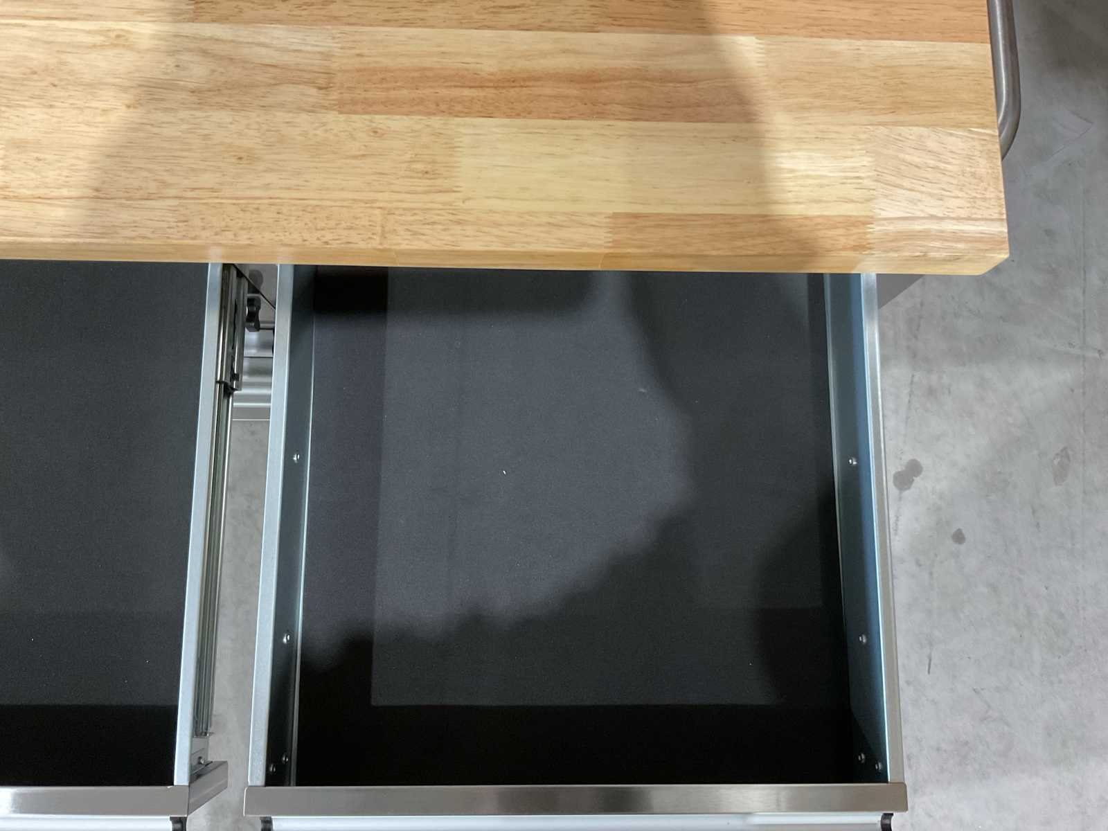 Voorzien van all 430 anti-fingerprint stainless steel; 15 laden; 35 mm houten werkblad; 2 handvaten; 4 x 6 inch wielen waarvan 2 wielen met rem; afsluitbaar door middel van sleutel; ongebruikt in doos (transport afmetingen 190x55x90 cm) Merk: Stahlworks Model: Deluxe RVS 72 inch Product type: 15 laden Gewicht: 125kg Lengte: 1830mm Hoogte: 950mm Materiaal: RVS