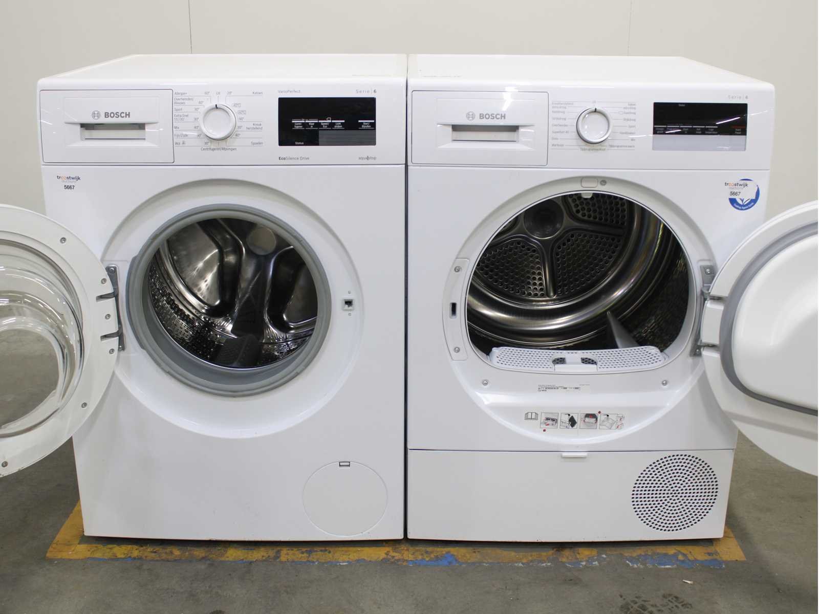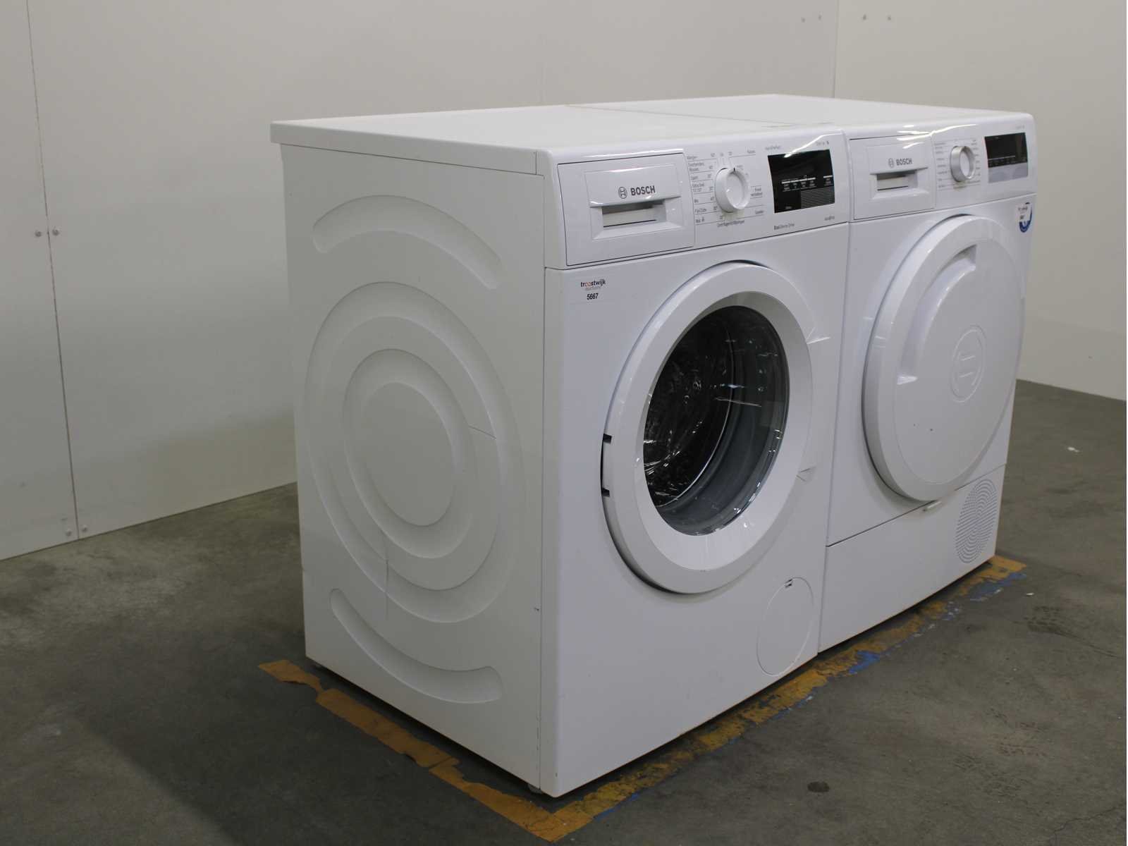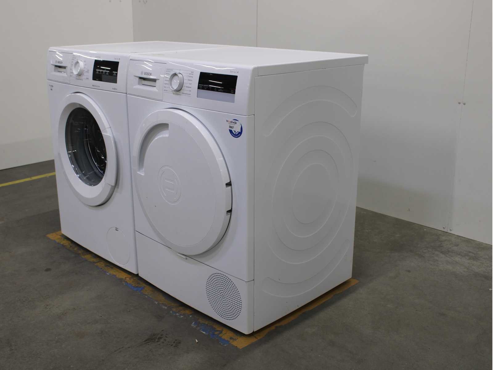 Deze wasmachine en wasdroger komen uit een partij jong gebruikt A-Merk witgoed. De machines zijn volledig getest, gereinigd en indien nodig gerepareerd. Houdt er rekening mee dat de machines lichte gebruikssporen kunnen hebben. Wasmachines en wasdrogers hebben vaak standaard afmetingen. Hoogte 85cm, Breedte 60cm en Diepte 60 tot 70cm, incl. uitstekende slangen e.d. aan de achterzijde. Als de machine vrij komt te staan is de afmeting minder relevant. Wil je de machine in een nis plaatsen of inbouwen? Controleer dan de exacte afmetingen op basis van het aangeboden merk en model/type. Within 7 days Merk: Bosch Serienummer: WNAT323471 en WTR83V01NL