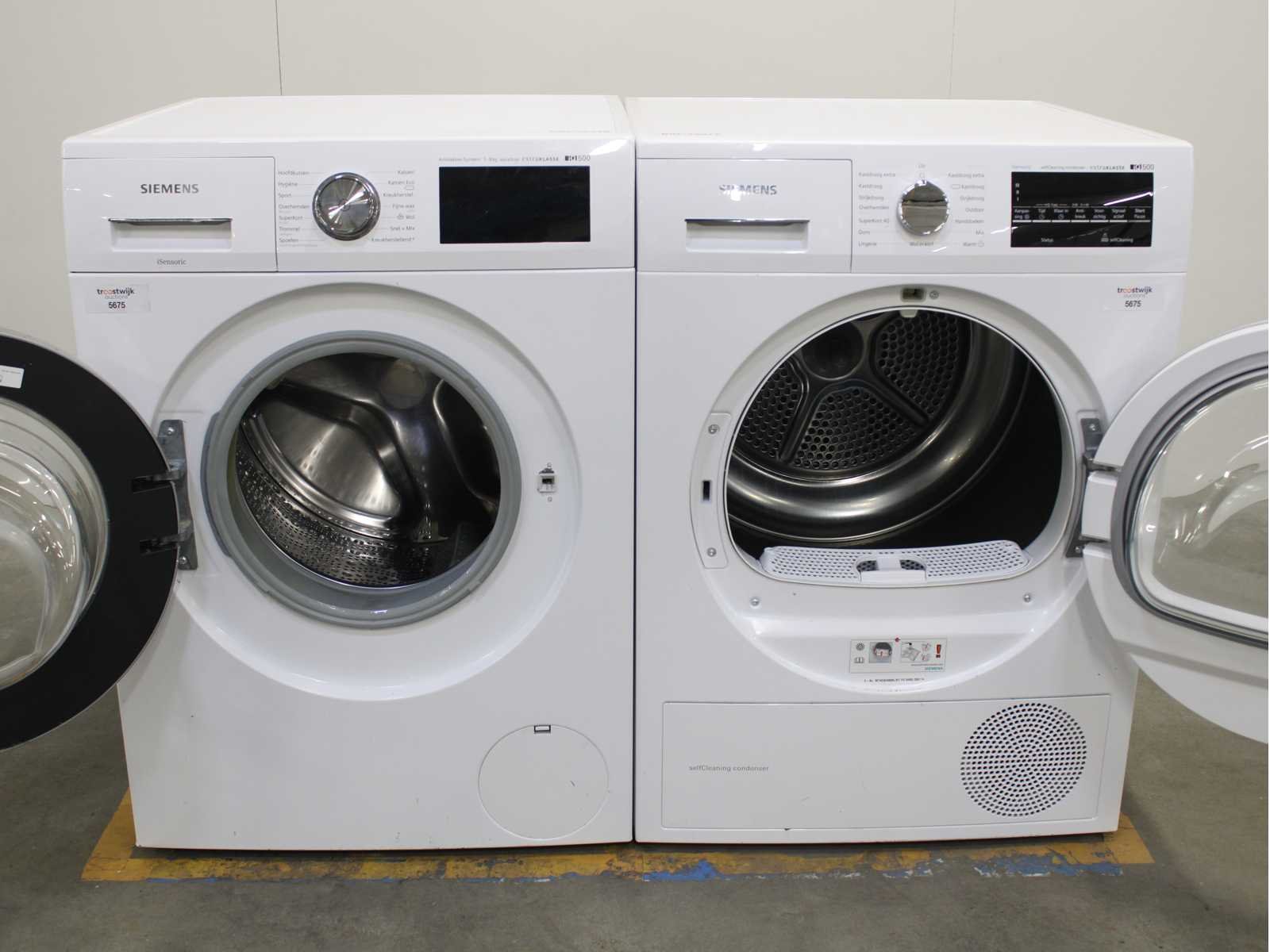 Deze wasmachine en wasdroger komen uit een partij jong gebruikt A-Merk witgoed. De machines zijn volledig getest, gereinigd en indien nodig gerepareerd. Houdt er rekening mee dat de machines lichte gebruikssporen kunnen hebben. Wasmachines en wasdrogers hebben vaak standaard afmetingen. Hoogte 85cm, Breedte 60cm en Diepte 60 tot 70cm, incl. uitstekende slangen e.d. aan de achterzijde. Als de machine vrij komt te staan is de afmeting minder relevant. Wil je de machine in een nis plaatsen of inbouwen? Controleer dan de exacte afmetingen op basis van het aangeboden merk en model/type. Within 7 days Merk: Siemens Serienummer: WM14T590NL en WT45W490NL