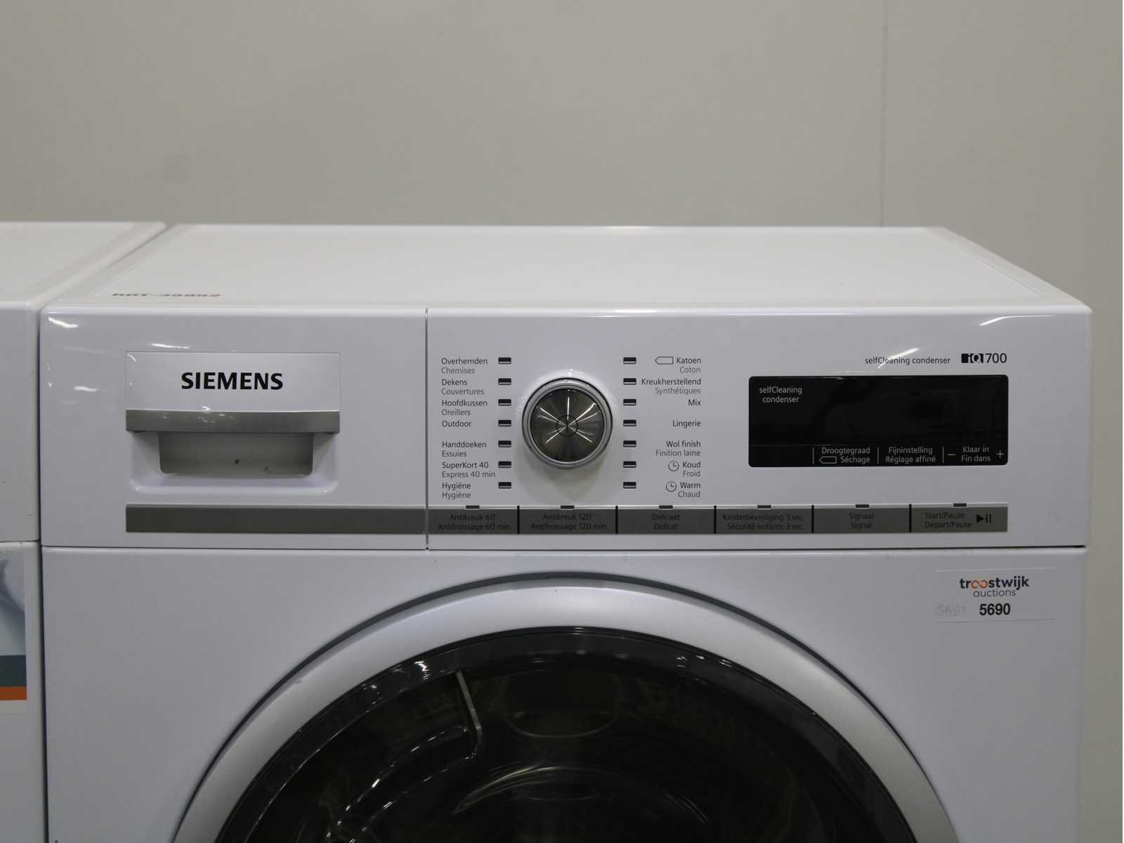 Deze wasmachine en wasdroger komen uit een partij jong gebruikt A-Merk witgoed. De machines zijn volledig getest, gereinigd en indien nodig gerepareerd. Houdt er rekening mee dat de machines lichte gebruikssporen kunnen hebben. Wasmachines en wasdrogers hebben vaak standaard afmetingen. Hoogte 85cm, Breedte 60cm en Diepte 60 tot 70cm, incl. uitstekende slangen e.d. aan de achterzijde. Als de machine vrij komt te staan is de afmeting minder relevant. Wil je de machine in een nis plaatsen of inbouwen? Controleer dan de exacte afmetingen op basis van het aangeboden merk en model/type. Within 7 days Merk: Siemens Serienummer: WM16W542NL/09 en WT47W560fG/05