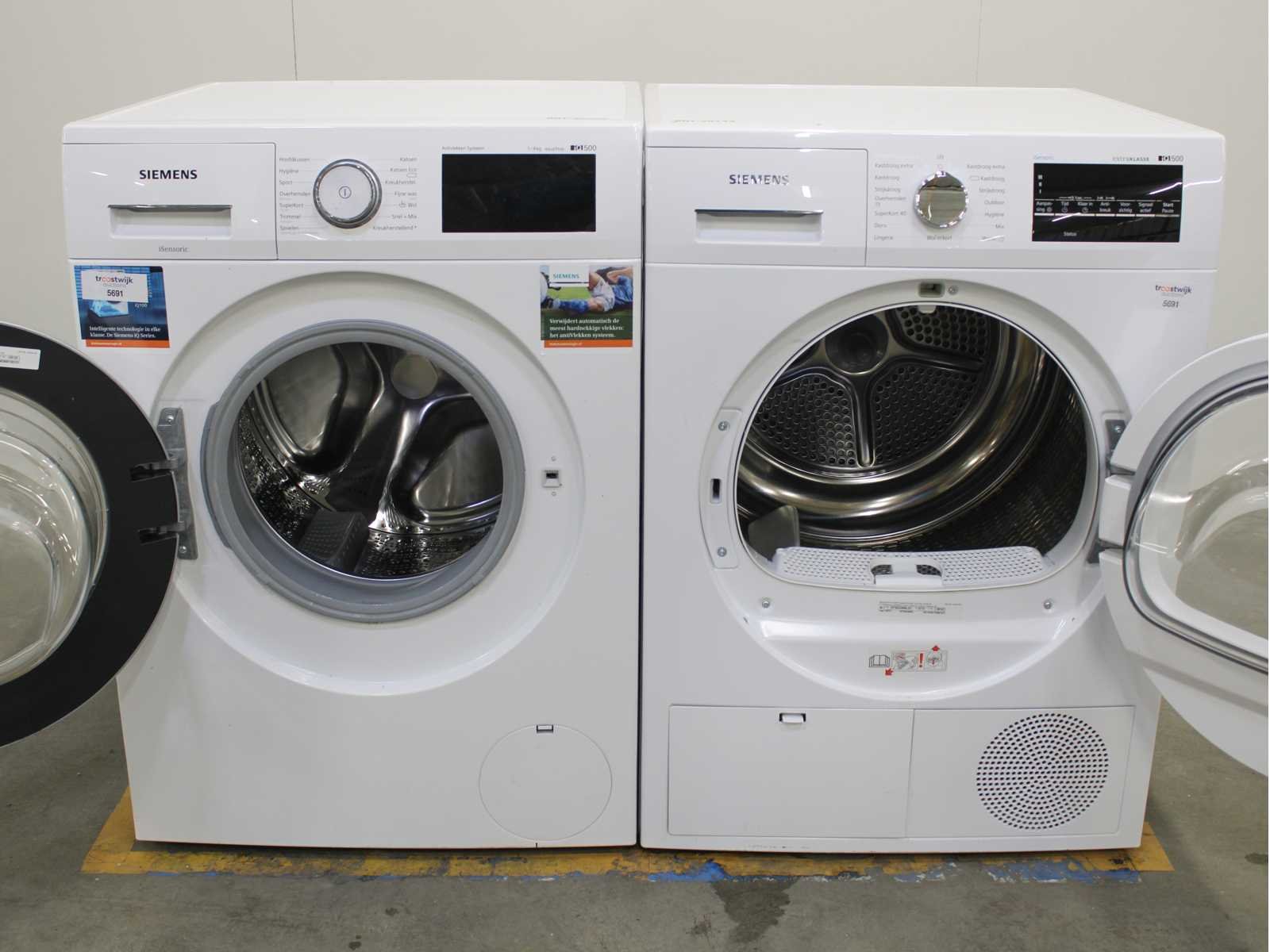 Deze wasmachine en wasdroger komen uit een partij jong gebruikt A-Merk witgoed. De machines zijn volledig getest, gereinigd en indien nodig gerepareerd. Houdt er rekening mee dat de machines lichte gebruikssporen kunnen hebben. Wasmachines en wasdrogers hebben vaak standaard afmetingen. Hoogte 85cm, Breedte 60cm en Diepte 60 tot 70cm, incl. uitstekende slangen e.d. aan de achterzijde. Als de machine vrij komt te staan is de afmeting minder relevant. Wil je de machine in een nis plaatsen of inbouwen? Controleer dan de exacte afmetingen op basis van het aangeboden merk en model/type. Within 7 days Merk: Siemens Serienummer: WM14T550NL/31 en WT46G490NL