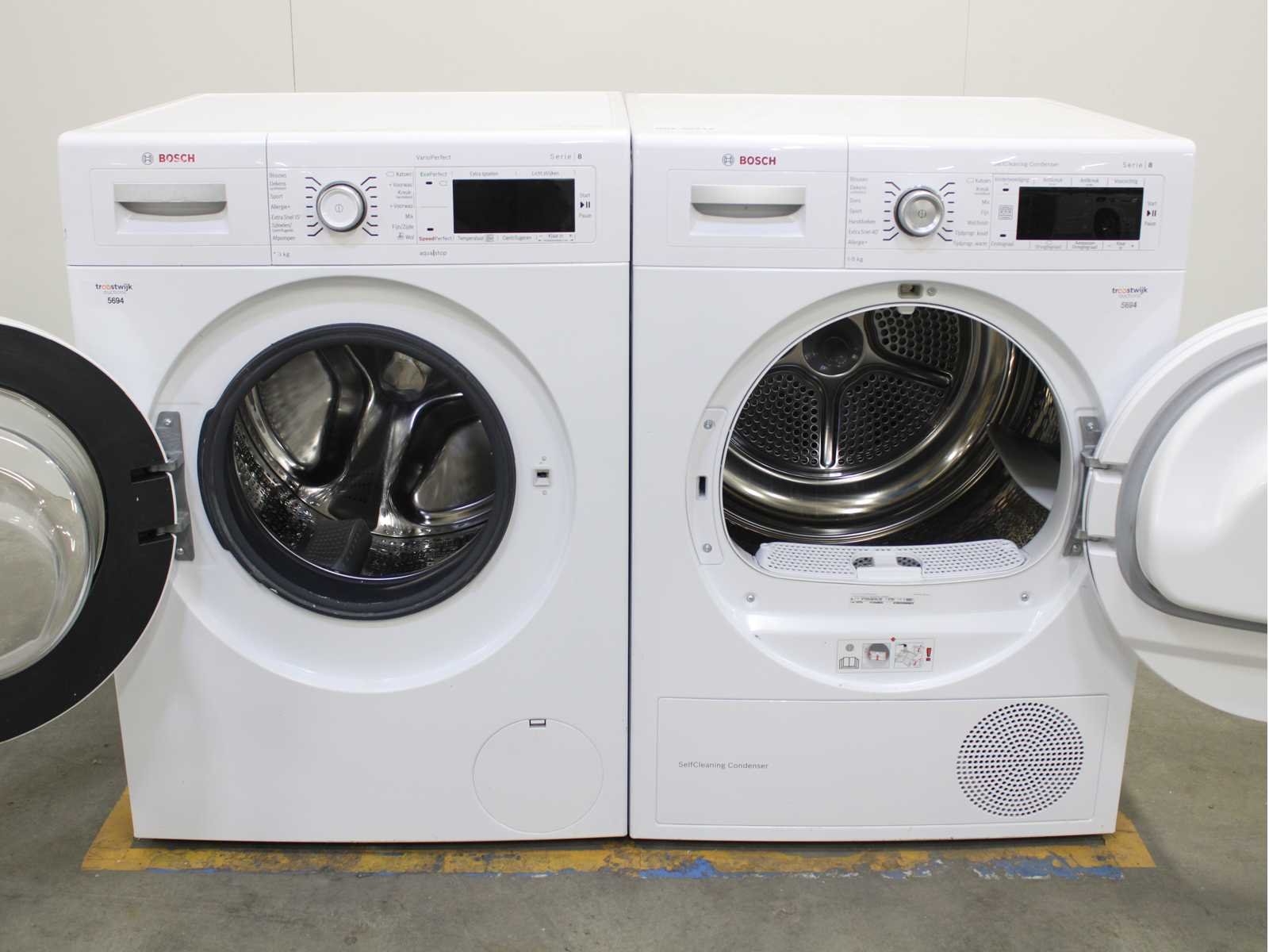 Deze wasmachine en wasdroger komen uit een partij jong gebruikt A-Merk witgoed. De machines zijn volledig getest, gereinigd en indien nodig gerepareerd. Houdt er rekening mee dat de machines lichte gebruikssporen kunnen hebben. Wasmachines en wasdrogers hebben vaak standaard afmetingen. Hoogte 85cm, Breedte 60cm en Diepte 60 tot 70cm, incl. uitstekende slangen e.d. aan de achterzijde. Als de machine vrij komt te staan is de afmeting minder relevant. Wil je de machine in een nis plaatsen of inbouwen? Controleer dan de exacte afmetingen op basis van het aangeboden merk en model/type. Within 7 days Merk: Bosch Serienummer: WAW28461NL/01 en WTW84562NL