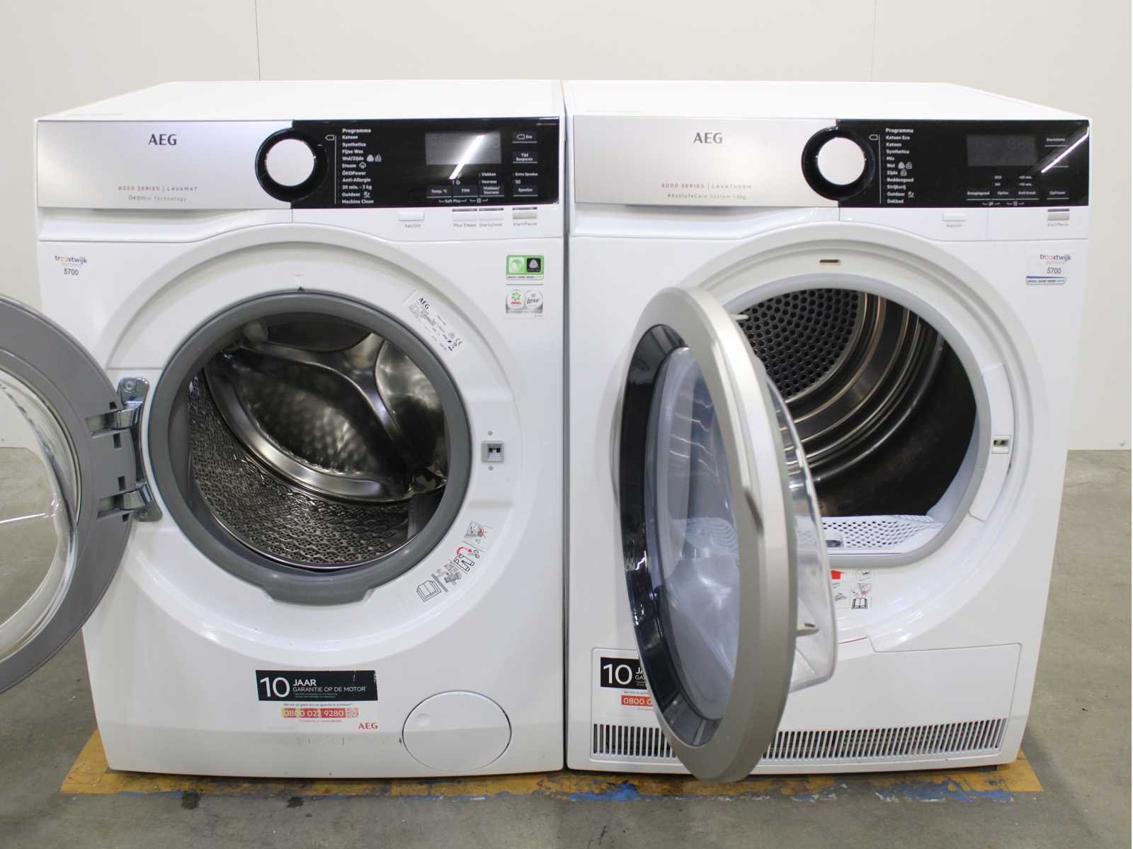 Deze wasmachine en wasdroger komen uit een partij jong gebruikt A-Merk witgoed. De machines zijn volledig getest, gereinigd en indien nodig gerepareerd. Houdt er rekening mee dat de machines lichte gebruikssporen kunnen hebben. Wasmachines en wasdrogers hebben vaak standaard afmetingen. Hoogte 85cm, Breedte 60cm en Diepte 60 tot 70cm, incl. uitstekende slangen e.d. aan de achterzijde. Als de machine vrij komt te staan is de afmeting minder relevant. Wil je de machine in een nis plaatsen of inbouwen? Controleer dan de exacte afmetingen op basis van het aangeboden merk en model/type. Within 7 days Merk: AEG Serienummer: L8FENS96 en T8DENS86