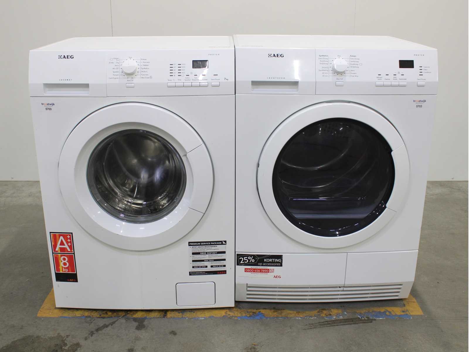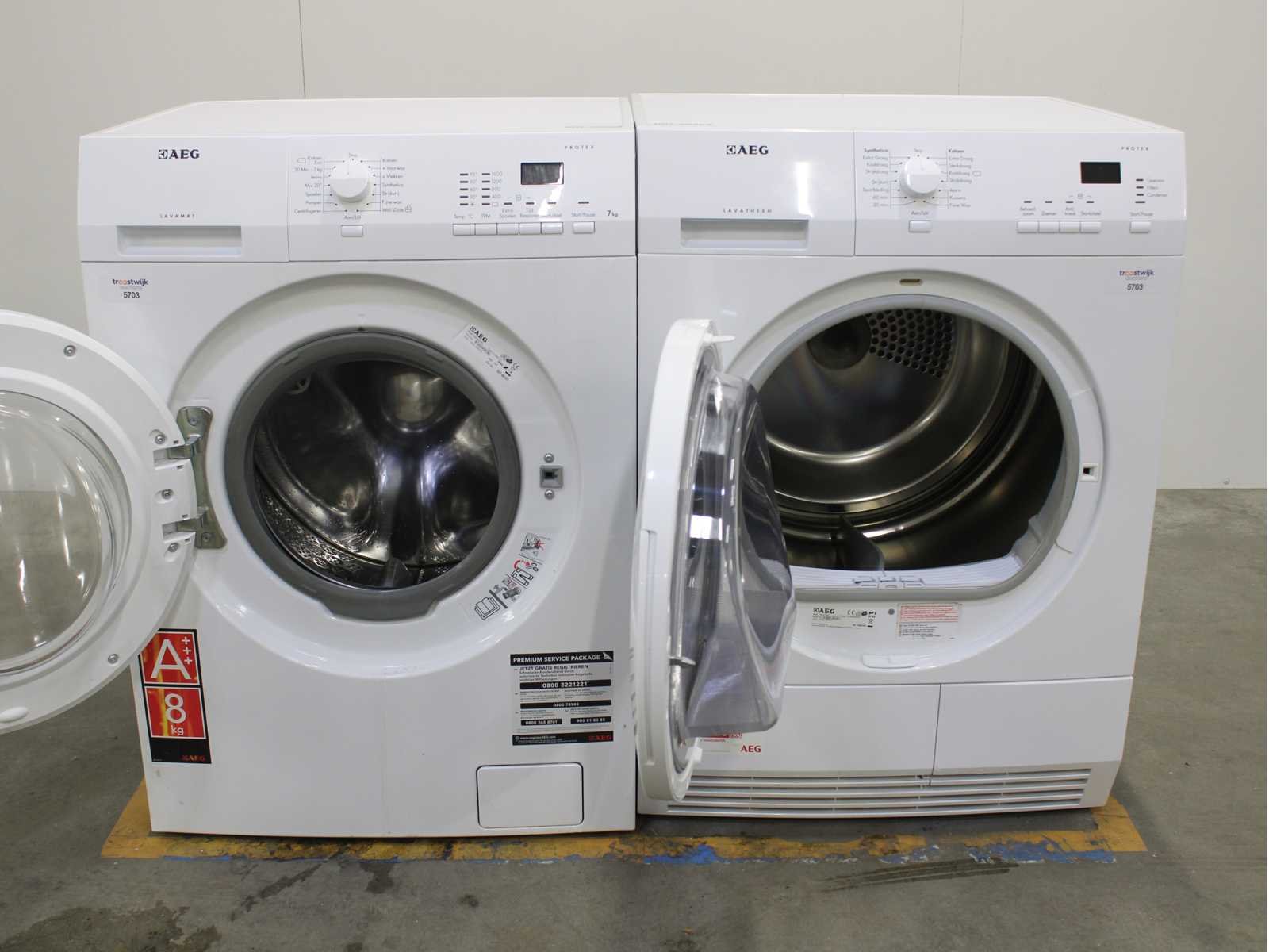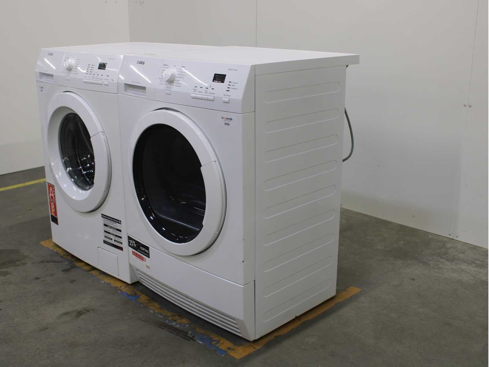 Deze wasdroger komt uit een partij jong gebruikt A-Merk witgoed. De machine is volledig getest, gereinigd en indien nodig gerepareerd. Houdt er rekening mee dat de machine lichte gebruikssporen kunnen hebben. Wasdrogers hebben vaak standaard afmetingen. Hoogte 85cm, Breedte 60cm en Diepte 60 tot 70cm, incl. uitstekende slangen e.d. aan de achterzijde. Als de machine vrij komt te staan is de afmeting minder relevant. Wil je de machine in een nis plaatsen of inbouwen? Controleer dan de exacte afmetingen op basis van het aangeboden merk en model/type. Within 7 days Merk: AEG Serienummer: T61270AC