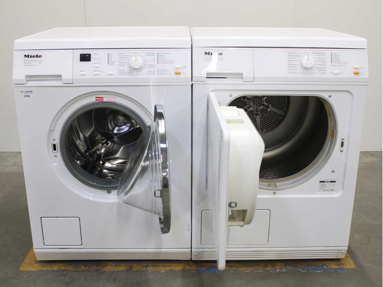 Deze wasmachine en wasdroger komen uit een partij jong gebruikt A-Merk witgoed. De machines zijn volledig getest, gereinigd en indien nodig gerepareerd. Houdt er rekening mee dat de machines lichte gebruikssporen kunnen hebben. Wasmachines en wasdrogers hebben vaak standaard afmetingen. Hoogte 85cm, Breedte 60cm en Diepte 60 tot 70cm, incl. uitstekende slangen e.d. aan de achterzijde. Als de machine vrij komt te staan is de afmeting minder relevant. Wil je de machine in een nis plaatsen of inbouwen? Controleer dan de exacte afmetingen op basis van het aangeboden merk en model/type. Within 7 days Merk: Miele Serienummer: W3203 en T8803C