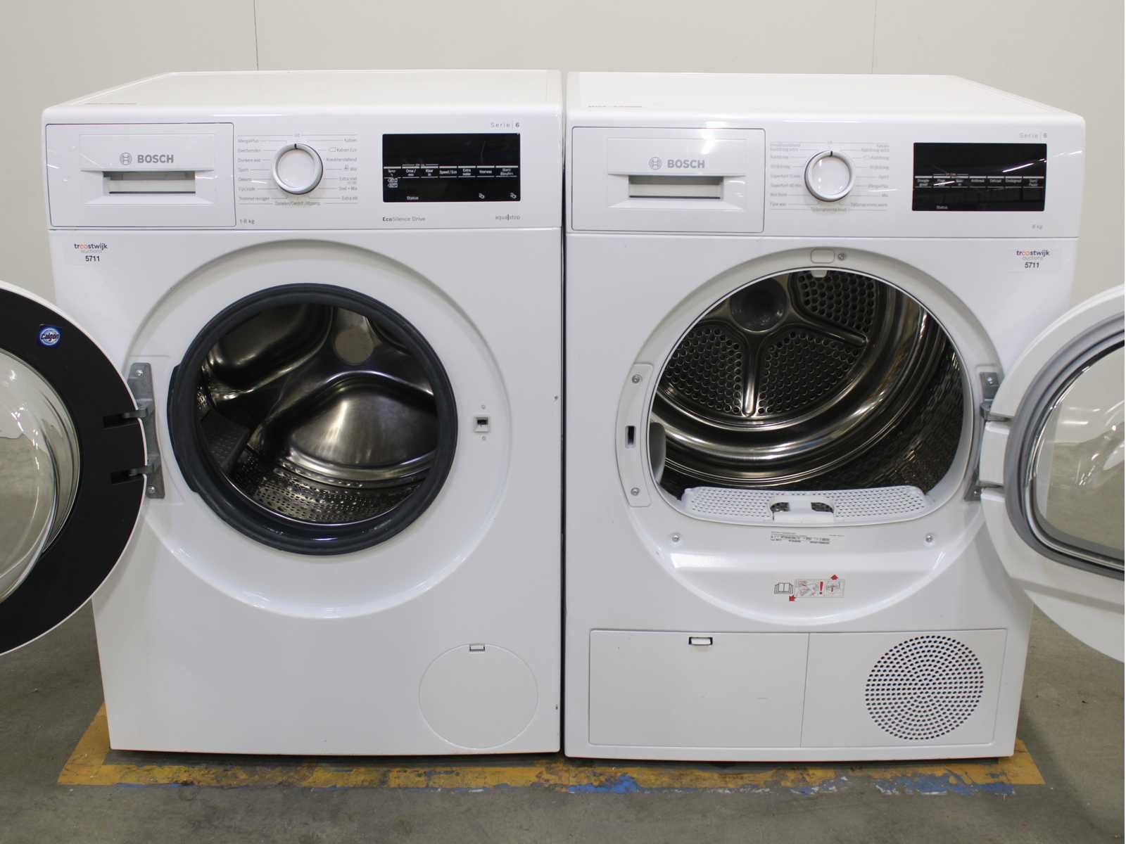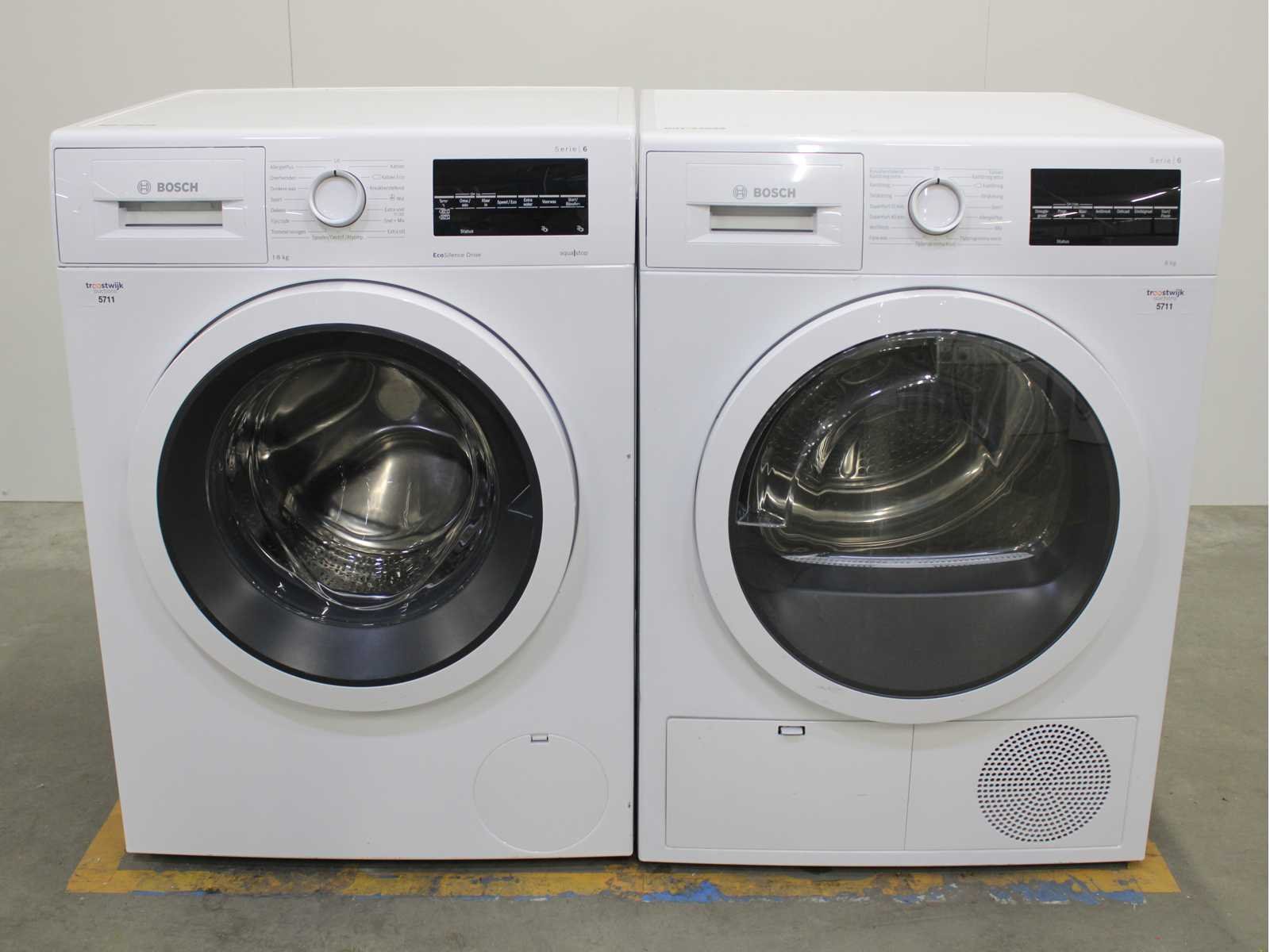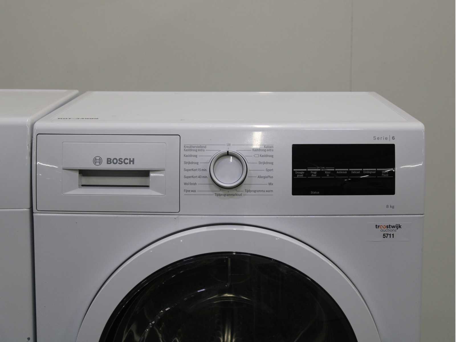 Deze wasmachine en wasdroger komen uit een partij jong gebruikt A-Merk witgoed. De machines zijn volledig getest, gereinigd en indien nodig gerepareerd. Houdt er rekening mee dat de machines lichte gebruikssporen kunnen hebben. Wasmachines en wasdrogers hebben vaak standaard afmetingen. Hoogte 85cm, Breedte 60cm en Diepte 60 tot 70cm, incl. uitstekende slangen e.d. aan de achterzijde. Als de machine vrij komt te staan is de afmeting minder relevant. Wil je de machine in een nis plaatsen of inbouwen? Controleer dan de exacte afmetingen op basis van het aangeboden merk en model/type. Within 7 days Merk: Bosch Serienummer: WAT284B2NL en WTG846C0NL