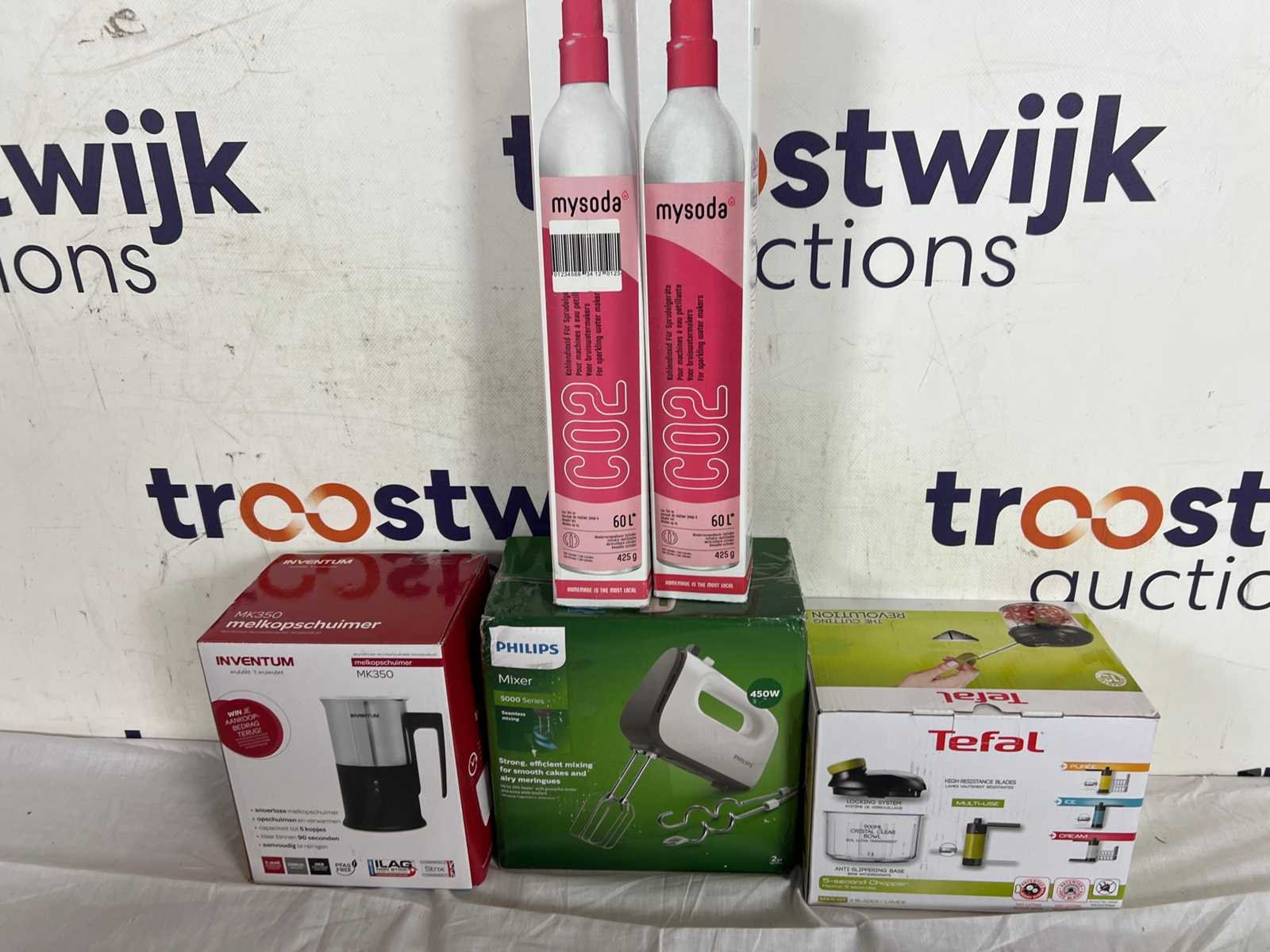 Dit kavel is afkomstig van een grote retailer. De retourgoederen zijn te gebruiken voor onderdelen en er kunnen accessoires missen. Daarnaast kunnen er gebruikssporen zijn op het product of kan de verpakking missen of beschadigd zijn. Het artikel is niet gecontroleerd of getest. Om een goed beeld te krijgen adviseren wij om gebruik te maken van de kijkdag. De kijkdag vindt plaats op de dag van sluiting. Aanmelden voor de kijkdag kan via aanmelden@troostwijkauctions.com. De verkoper verstuurt de kavel binnen 1 tot 7 dagen na betaling. Within 7 days Merk: Inventum, Philips, Tefal, Mysoda