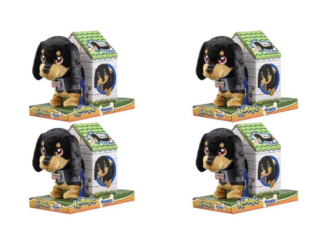 Animagic waggles knuffel hond - zwart - interactieve knuffel - wandel en communiceer met waggles
