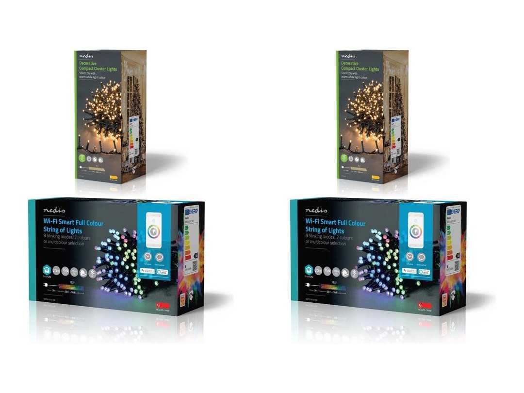 Nedis kerstverlichting - compacte cluster - 560 led's - warm wit - 11.2 m - licht effecten: 7 - binnen & buiten - netvoeding + nedis smartlife-kerstverlichting - koord - wi-fi - rgb - 168 led's - 20.0 m - android / ios