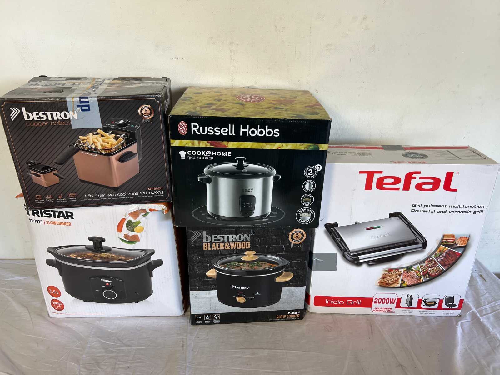 Dit kavel is afkomstig van een grote retailer. De retourgoederen zijn te gebruiken voor onderdelen en er kunnen accessoires missen. Daarnaast kunnen er gebruikssporen zijn op het product of kan de verpakking missen of beschadigd zijn. Het artikel is niet gecontroleerd of getest. Om een goed beeld te krijgen adviseren wij om gebruik te maken van de kijkdag. De kijkdag vindt plaats op de dag van sluiting. Aanmelden voor de kijkdag kan via aanmelden@troostwijkauctions.com Within 7 days Merk: Bestron, Tristar, Tefal, Russell Hobbs