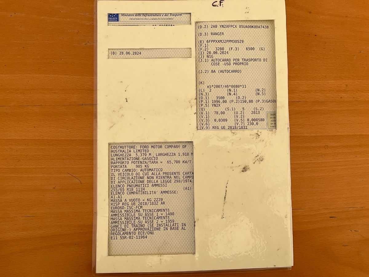 Wij kunnen voor dit voertuig geen tijdelijke platen afgeven. Merk: Ford Model: Ranger Type: 2.0 TDCi EcoBlue Wildtrak e-4WD Double Cab Bouwjaar: 2024 Afgelezen kilometerstand: 25568km Cilinderinhoud: 1996cc Vermogen (kW): 151kW Brandstof: Diesel Chassisnummer: 6FPPXXMJ2PPM30529 Datum eerste toelating: 06-2024 APK vervaldatum: 06-2028 Vermogen (pk): 205hp Aandrijving: Start en rijdt Aantal zitplaatsen: 5 Kleur: Zwart Transmissie: Automaat Aantal deuren: 4 Aantal sleutels: 2 Aantal cilinders: 4 Carrosserie: Pickup Nationaliteit documenten: Italië CO2-uitstoot NEDC: 230 Start en rijdt: Start and drive startinformatie : Start en rijdt