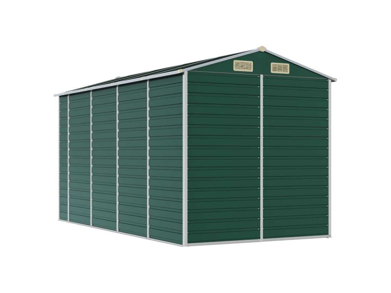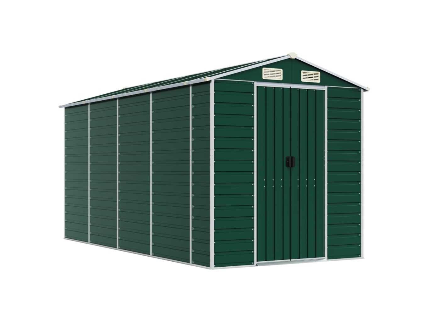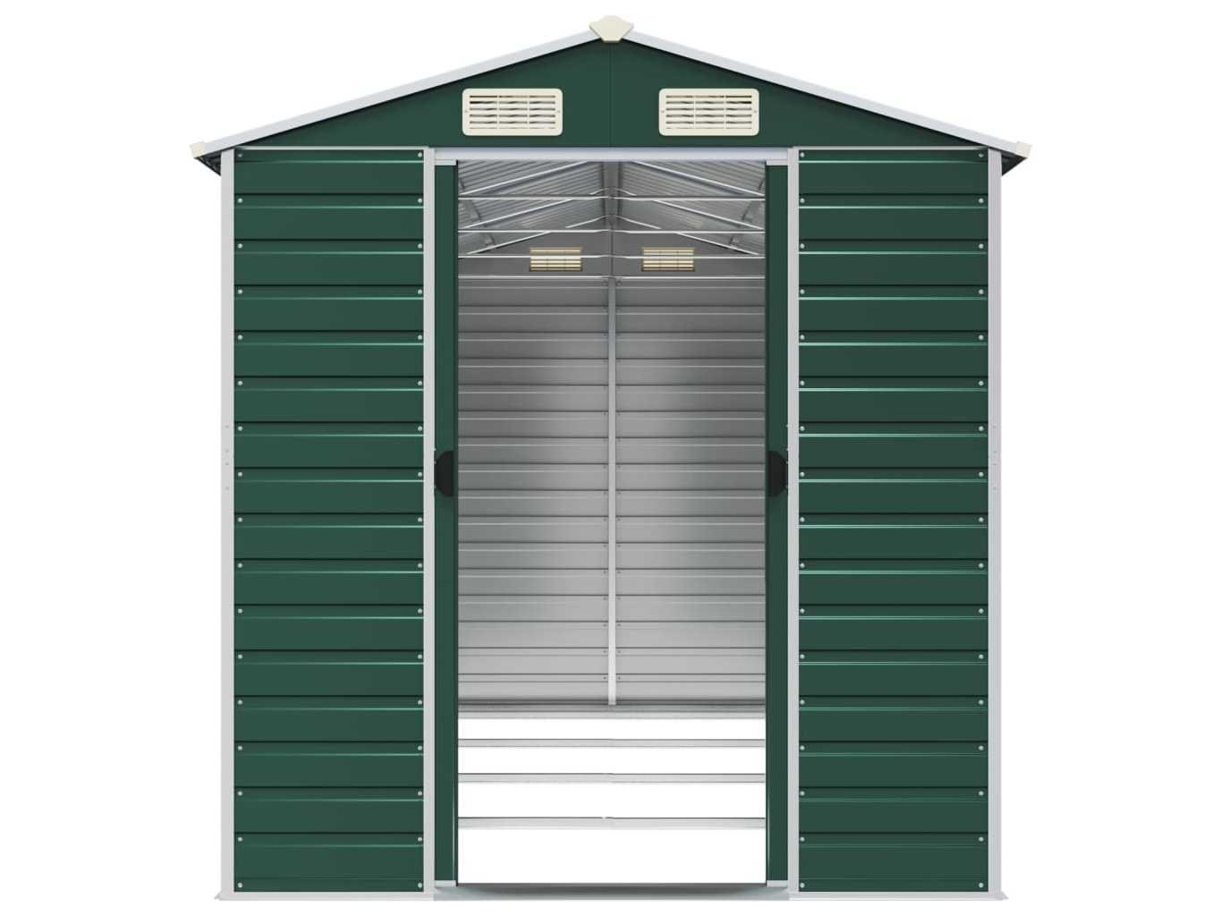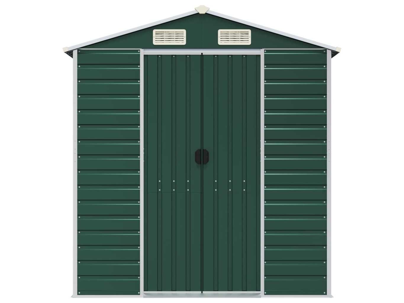 Omschrijving Breid je tuinopbergmogelijkheden uit en bescherm je gereedschap met deze multifunctionele tuinschuur. Robuust materiaal: het tuinschuurtje is gemaakt van gegalvaniseerd staal, dat roestvorming voorkomt en lang meegaat. Staal is een buitengewoon hard en sterk materiaal. Het biedt stevigheid en stabiliteit. Galvanisatie biedt een betere bescherming tegen corrosie en is handig voor producten die buiten of in ruwe omgevingen worden gebruikt. Voldoende opbergruimte: deze metalen schuur biedt voldoende ruimte om je brandhout, tuingereedschap, meubels, uitrusting en meer in op te bergen. Handige handgrepen: de deur van de opbergschuur is voorzien van handgrepen voor gemakkelijke toegang. Goede ventilatie: de berging heeft 4 ventilatieopeningen die zorgen voor ventilatie, om de ophoping van vocht en geurtjes in de schuur te verminderen. Schuin ontwerp: dankzij het schuine dak loopt water er ongehinderd vanaf. Kleur: groen Materiaal: gegalvaniseerd staal Totale afmetingen: 191 x 385 x 198 cm (B x D x H) Afmetingen deur: 80 x 170 cm (B x H) Merk: vidaXL Model: zadeldak Product type: tuinhuis Kleur: donkergroen Gewicht: 125kg Lengte: 385cm Breedte: 191cm Hoogte: 198cm Materiaal: Verzinkt-gespoten staal