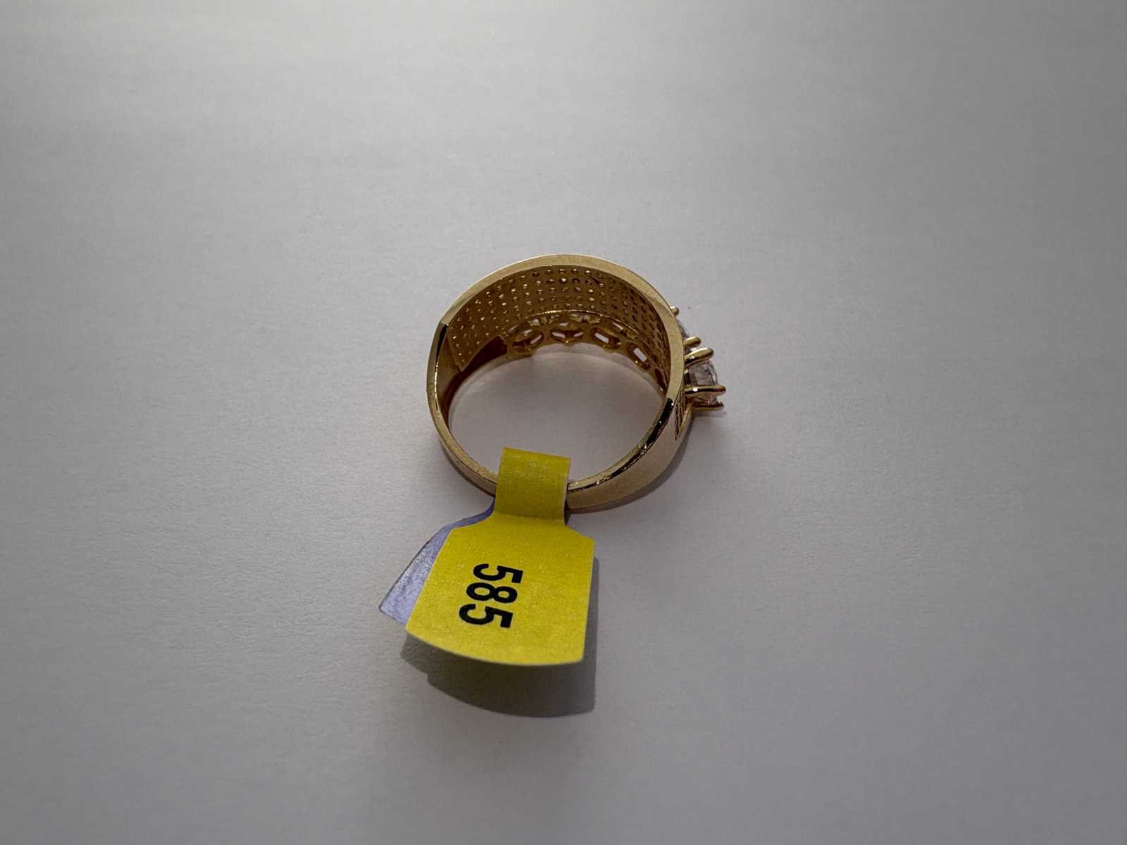 14 karaats geelgouden ring met zirkonia, totaal gewicht: 4g, aantal gram goud: 2,34g Product type: 14 karaats geelgouden ring met zirkonia Ringmaat: 55