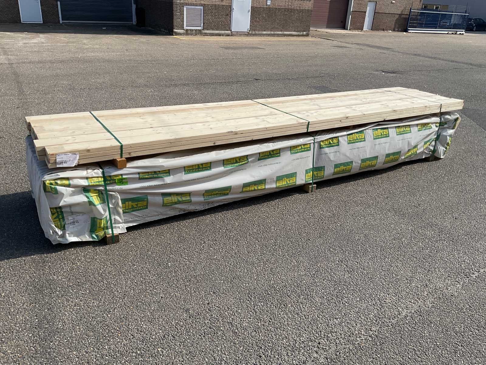 Lengte: 510cm Breedte: 17cm Hoogte: 3.8cm Materiaal: Vurenhout