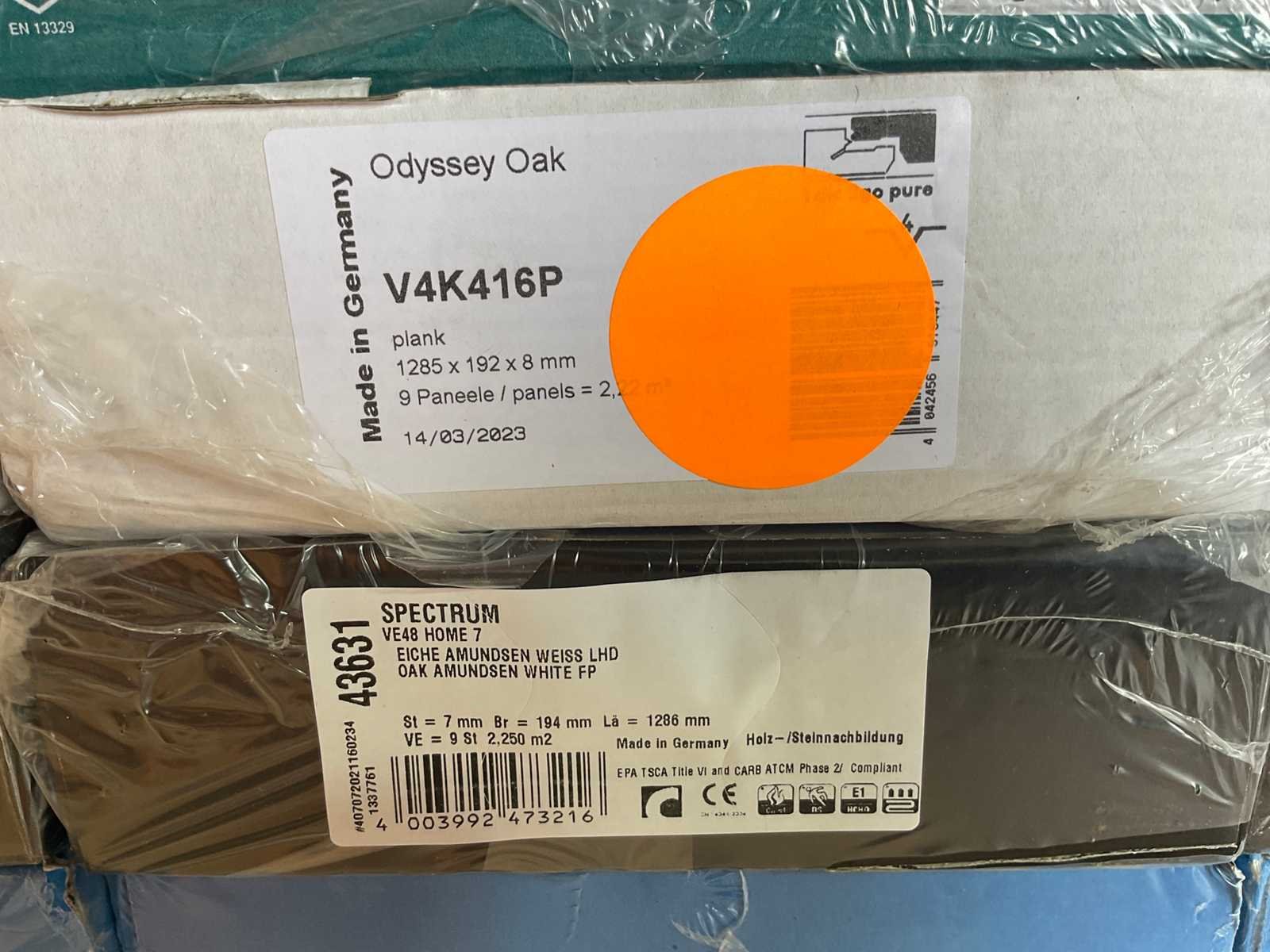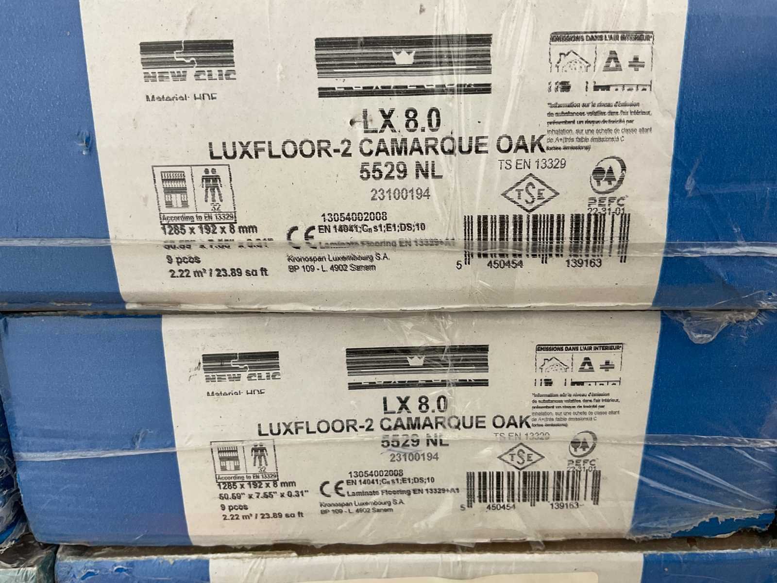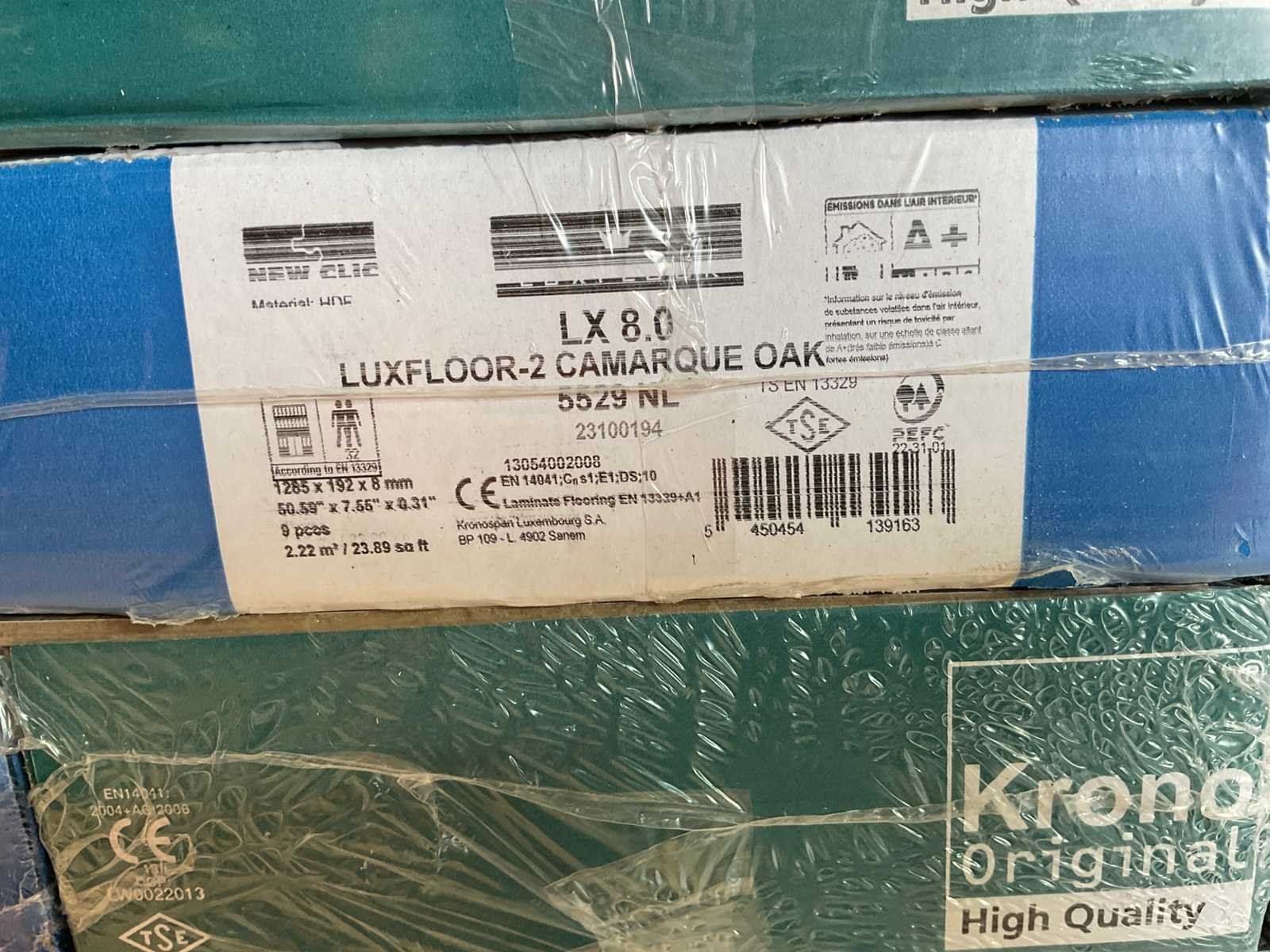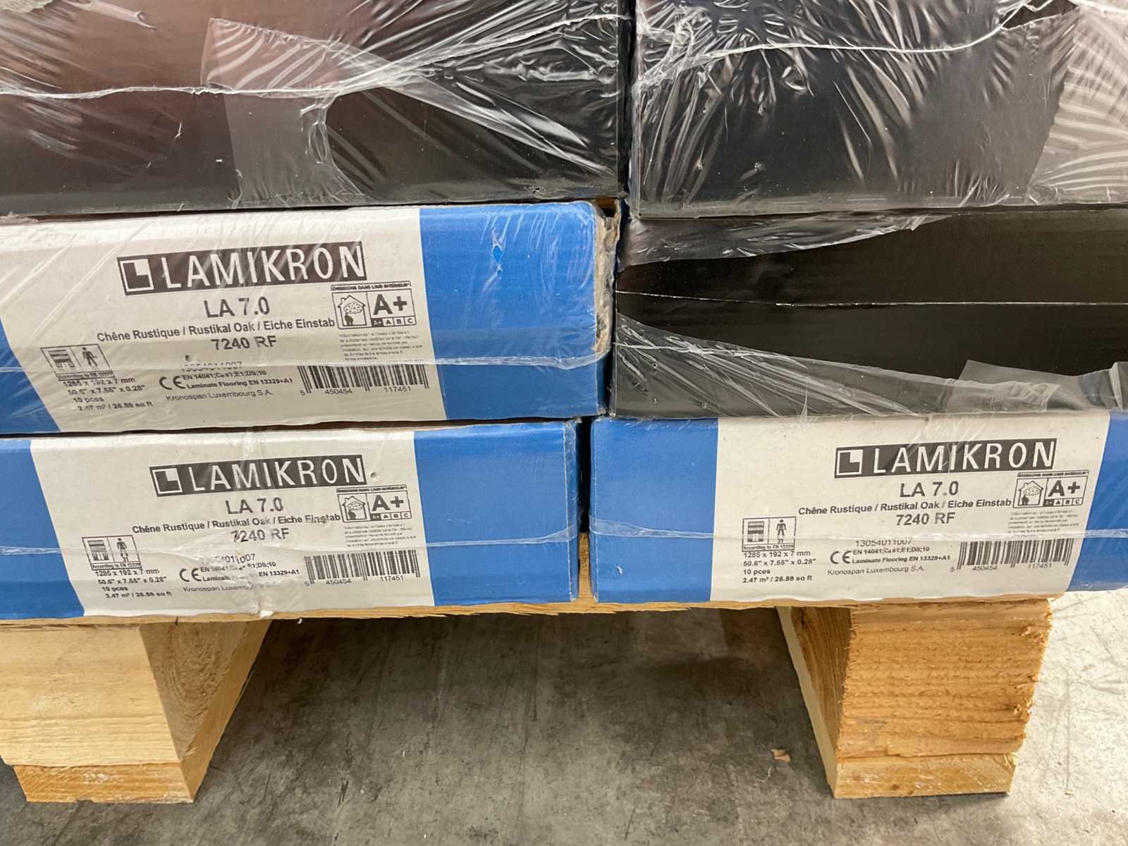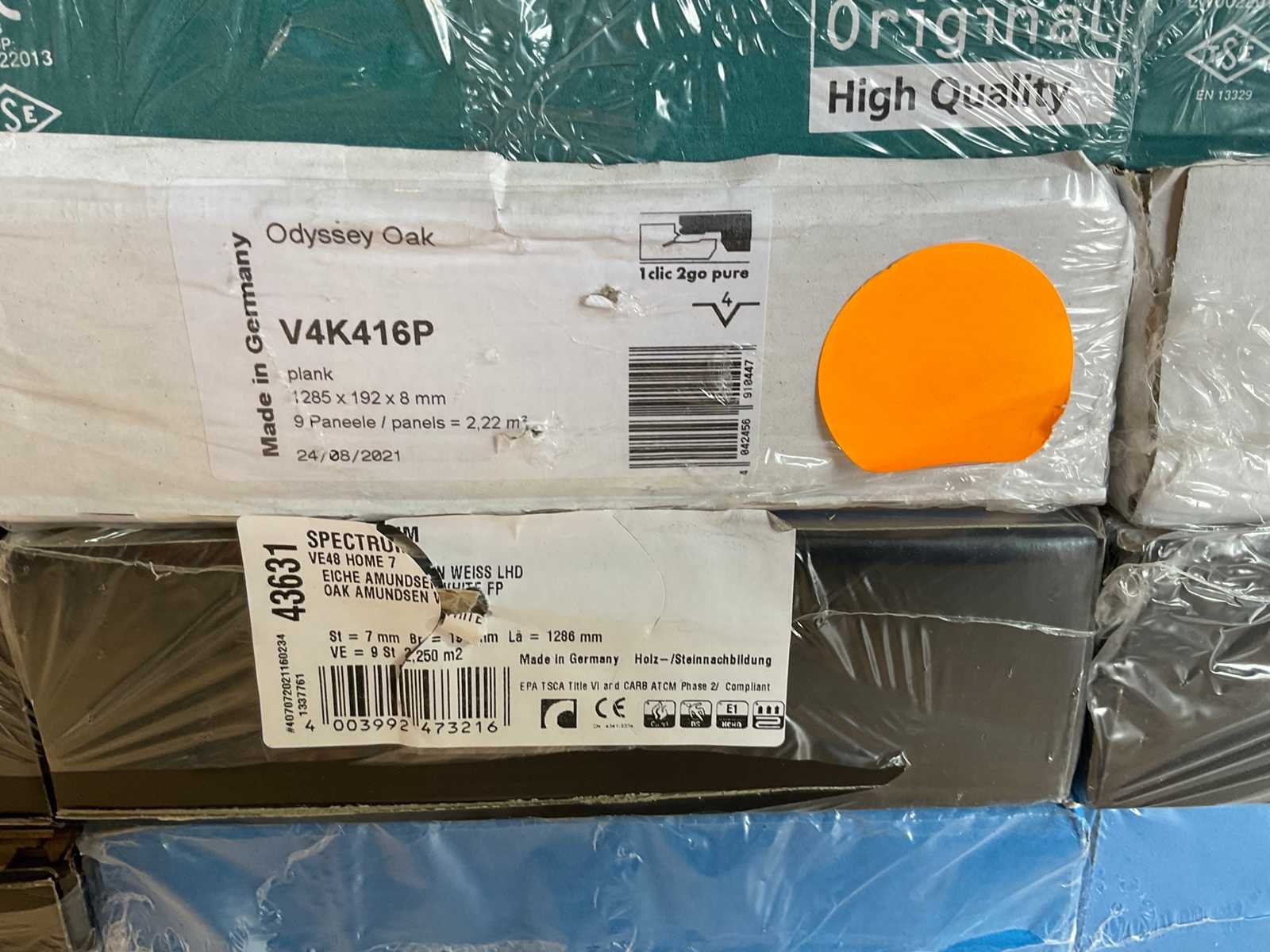 Mixpallet met diverse soorten laminaat – ongeveer 35 pakken, goed voor circa 77m². Bekijk de foto’s voor specificaties en details.