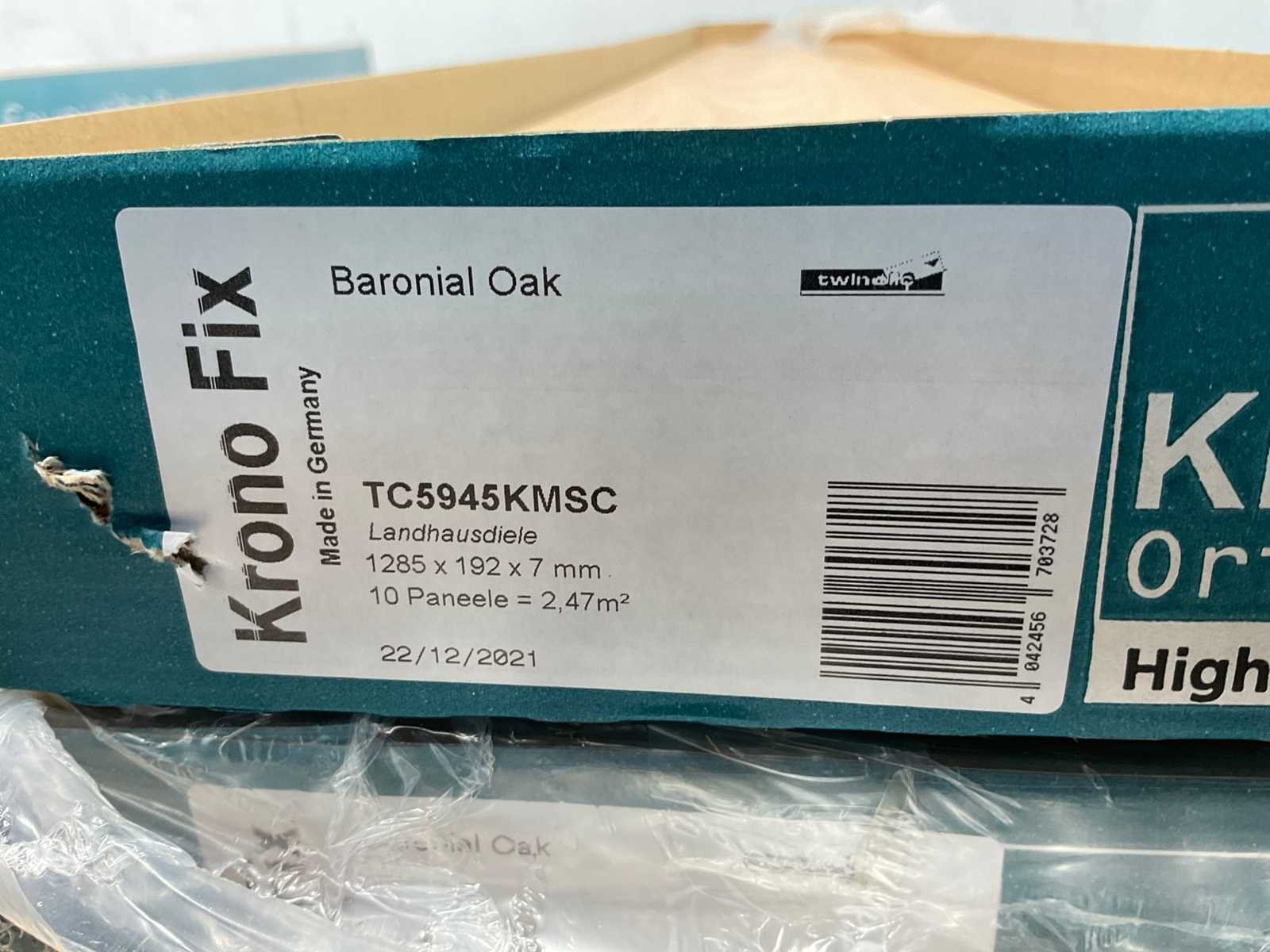 Kliklaminaat a 2,47 m2 per pak 1 pak bestaat uit 10 planken a 1285x192x7mm https://www.tehno-center.si/laminat-baronial-5945 https://topdom.si/izdelek/laminat-hrast-baronial-5945/ Merk: Krono Model: Fix Product type: Kliklaminaat Geschikt voor vloerverwarming: true V-groef: true Aantal m² per verpakking: 2.47m² Kleur: Baronial Oak Lengte: 1285mm Breedte: 192mm Hoogte: 7mm