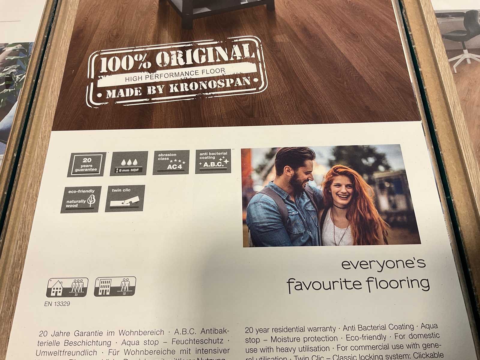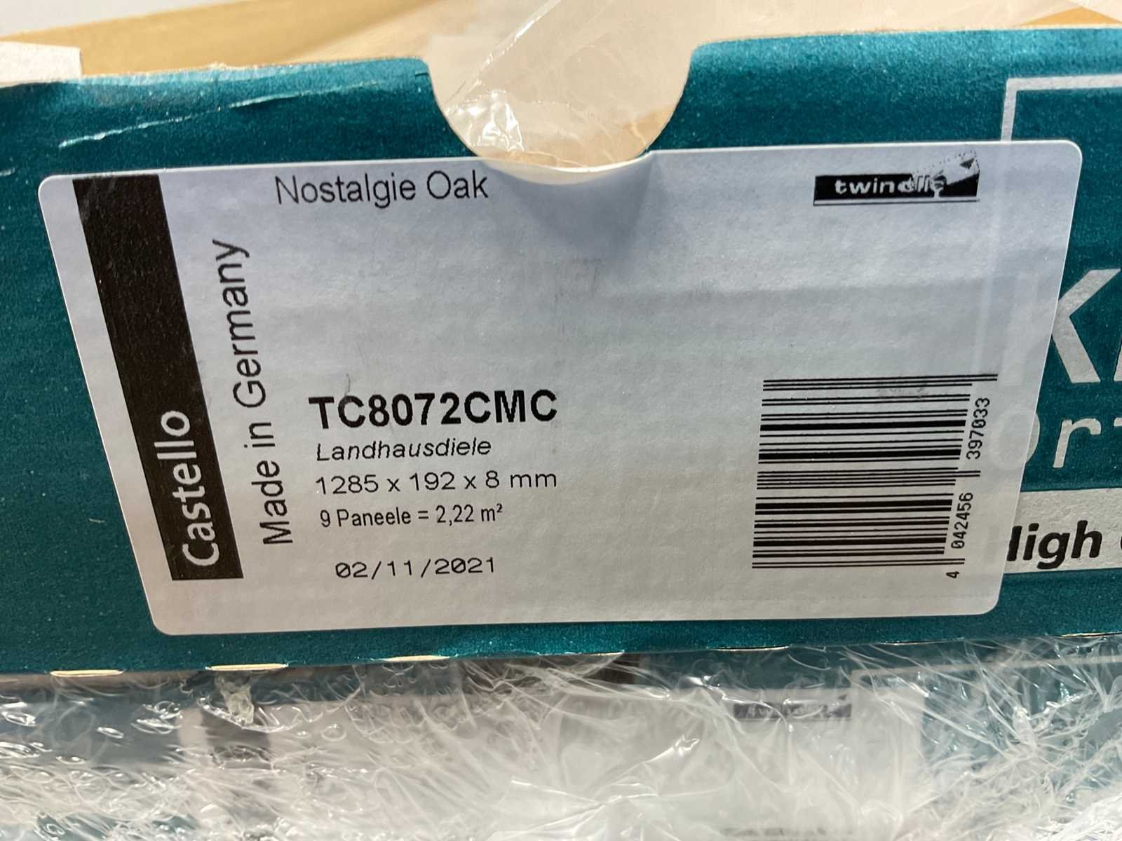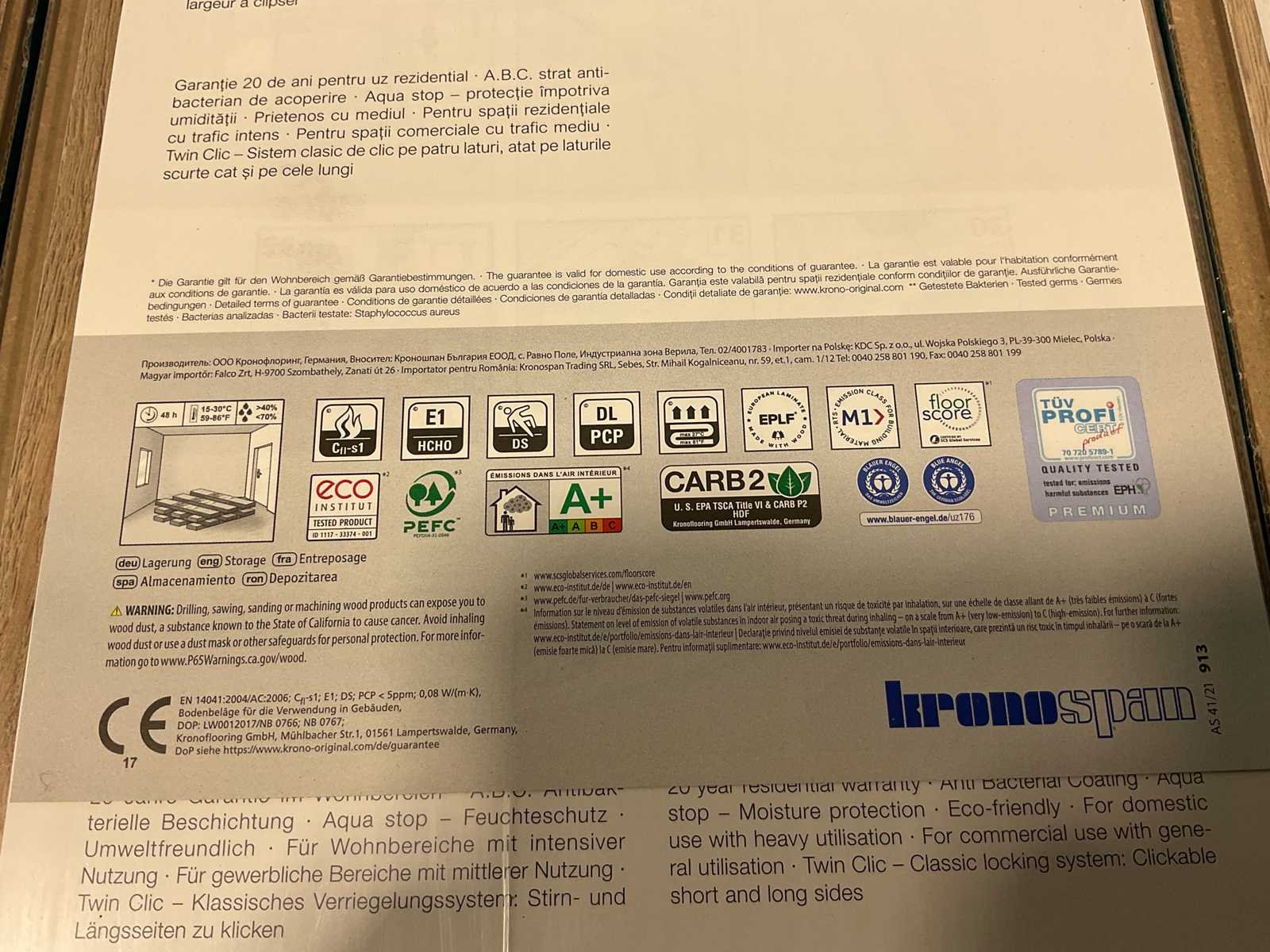 Kliklaminaat – 2,22 m² per pak. Inhoud per pak: 9 planken van 1285 × 192 × 8 mm. https://pennyshop.ba/shop/proizvod/krono-orginal-laminat-ac4-8072/141003 https://www.webba.hu/Laminalt-parketta-8-mm-Krono-Original-Castello-807 Merk: Krono Model: Castello Product type: kliklaminaat V-groef: true Aantal m² per verpakking: 2.22m² Kleur: Nostalgic Oak Lengte: 1285mm Breedte: 192mm Hoogte: 8mm