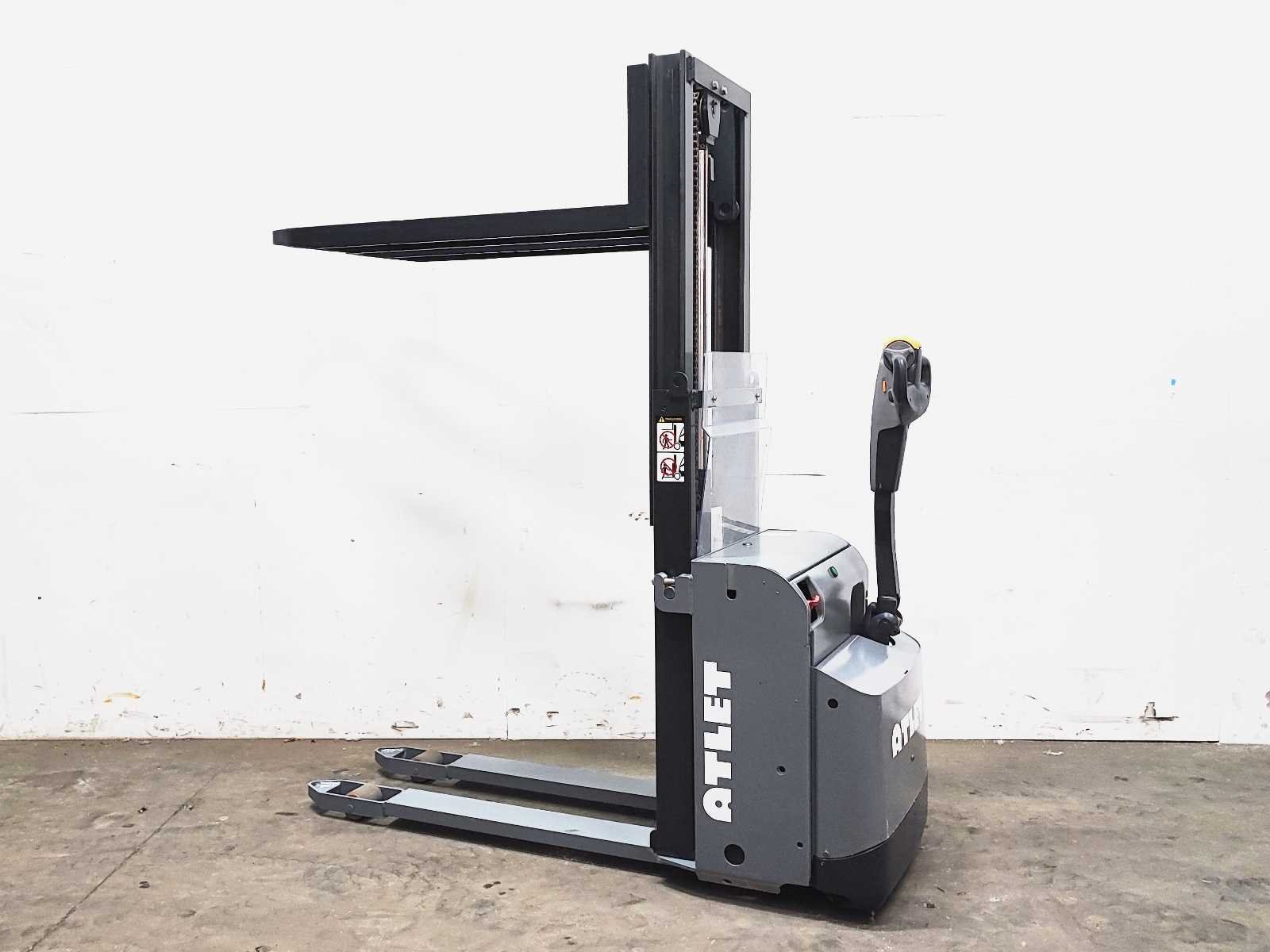 Merk: Atlet Type: PSL125 Serienummer: PSL207553/03 Hefvermogen: 1250kg Hefhoogte: 1790mm Lepellengte: 1200mm Afgelezen urenstand: 1524 Minimale doorrijhoogte: 1400mm Totale afmeting L: 1950mm Totale afmeting Breedte: 680mm Totale afmeting Hoogte: 1400mm Accu lader: true