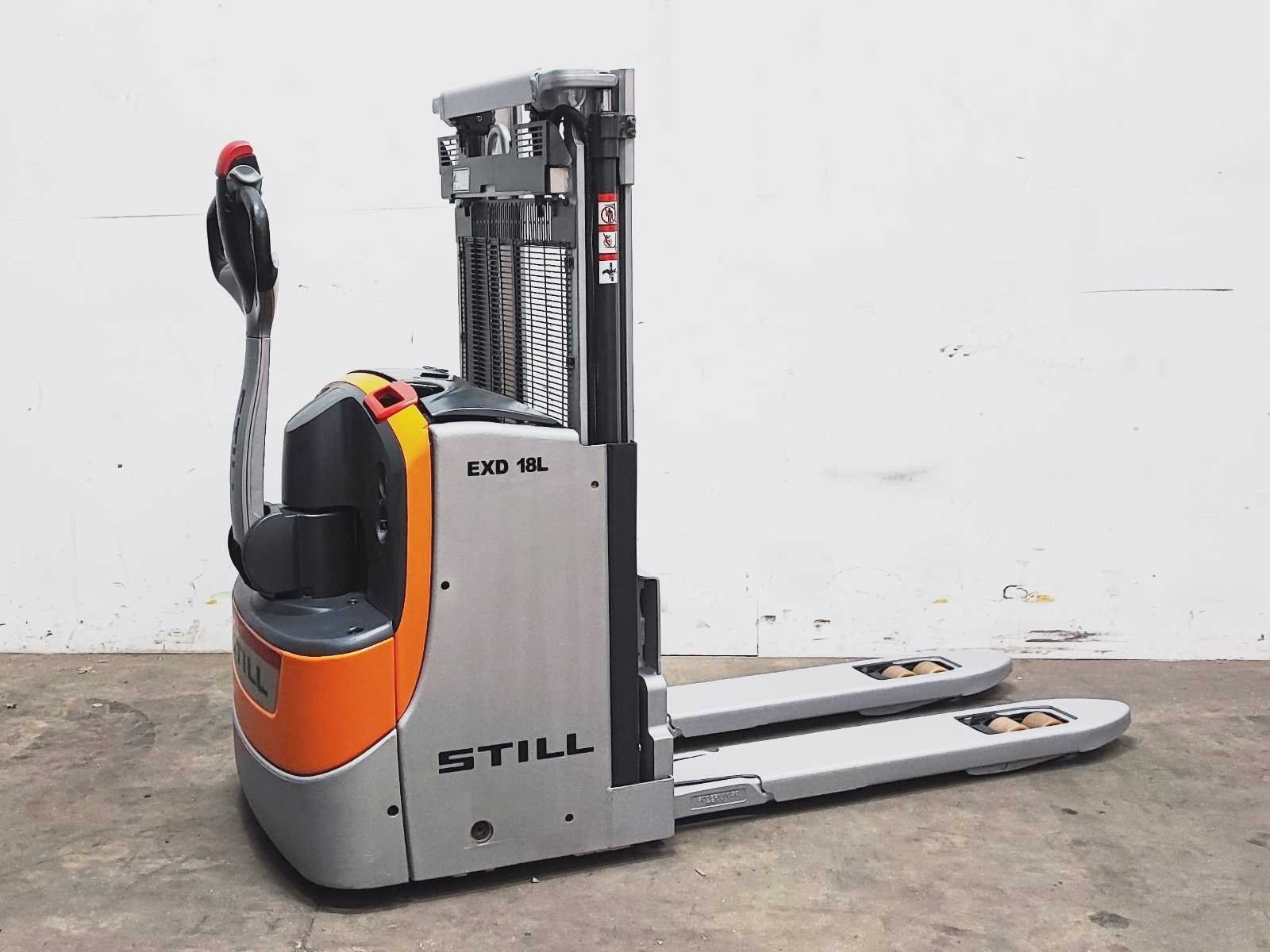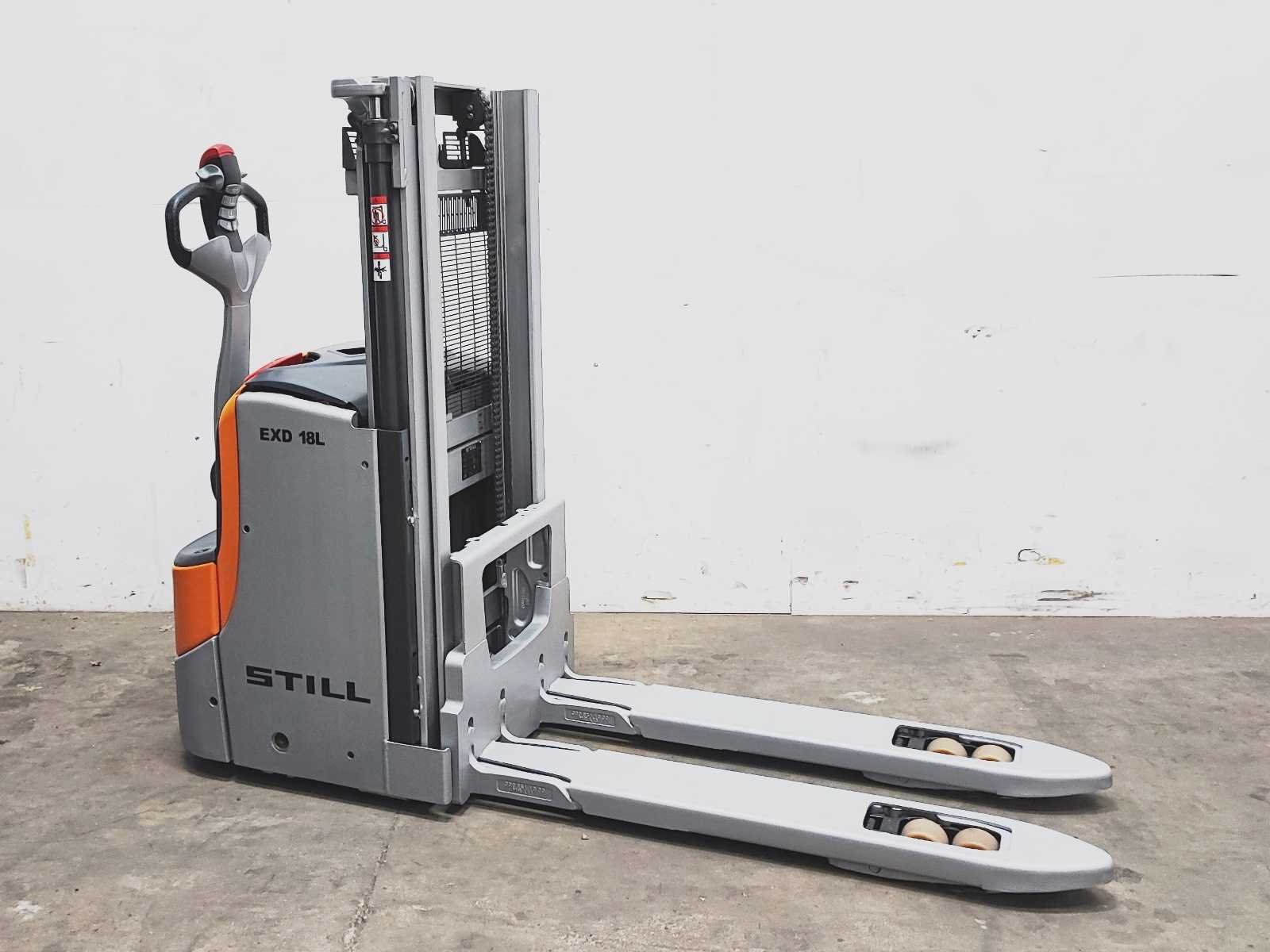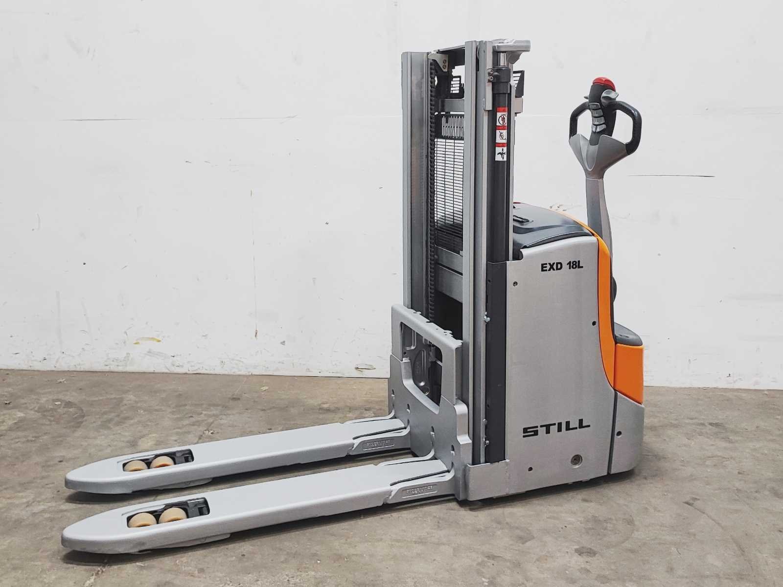 Still EXD 18L elektro dubbelstock stapelaar v.v. duplo mast met dubbelstockfunctie, hefhoogte 210 / 2200 mm, hefvermogen 1800 / 800 kg Merk: Still Type: EXD 18L Bouwjaar: 2020 Serienummer: W40286X00016 Hefvermogen: 1800kg Hefhoogte: 2200mm Lepellengte: 1180mm Afgelezen urenstand: 1752 Eigen gewicht: 980kg Minimale doorrijhoogte: 1480mm Totale afmeting L: 2100mm Totale afmeting Breedte: 750mm Totale afmeting Hoogte: 1480mm Accu lader: true