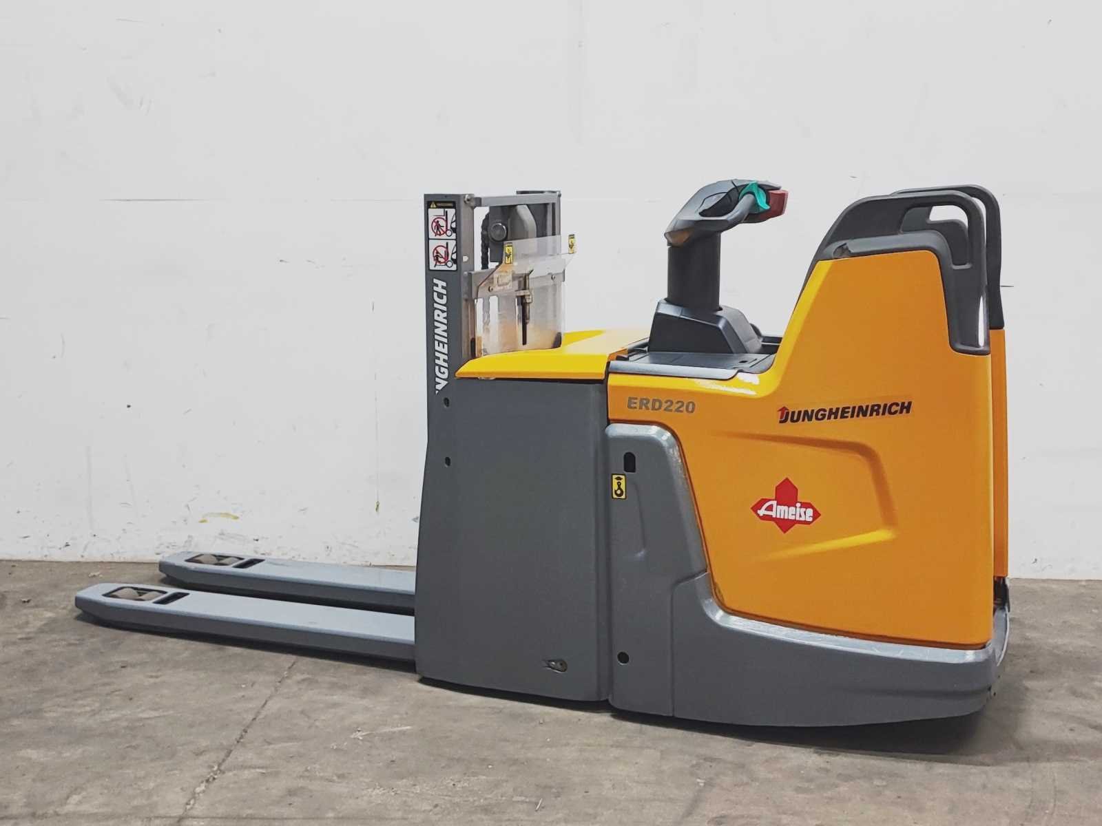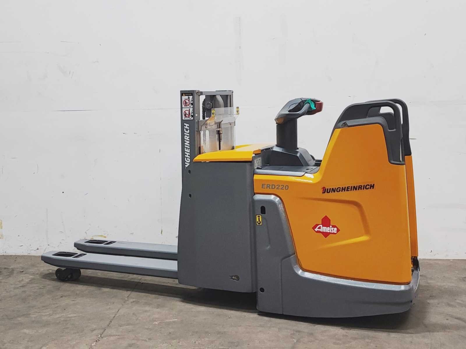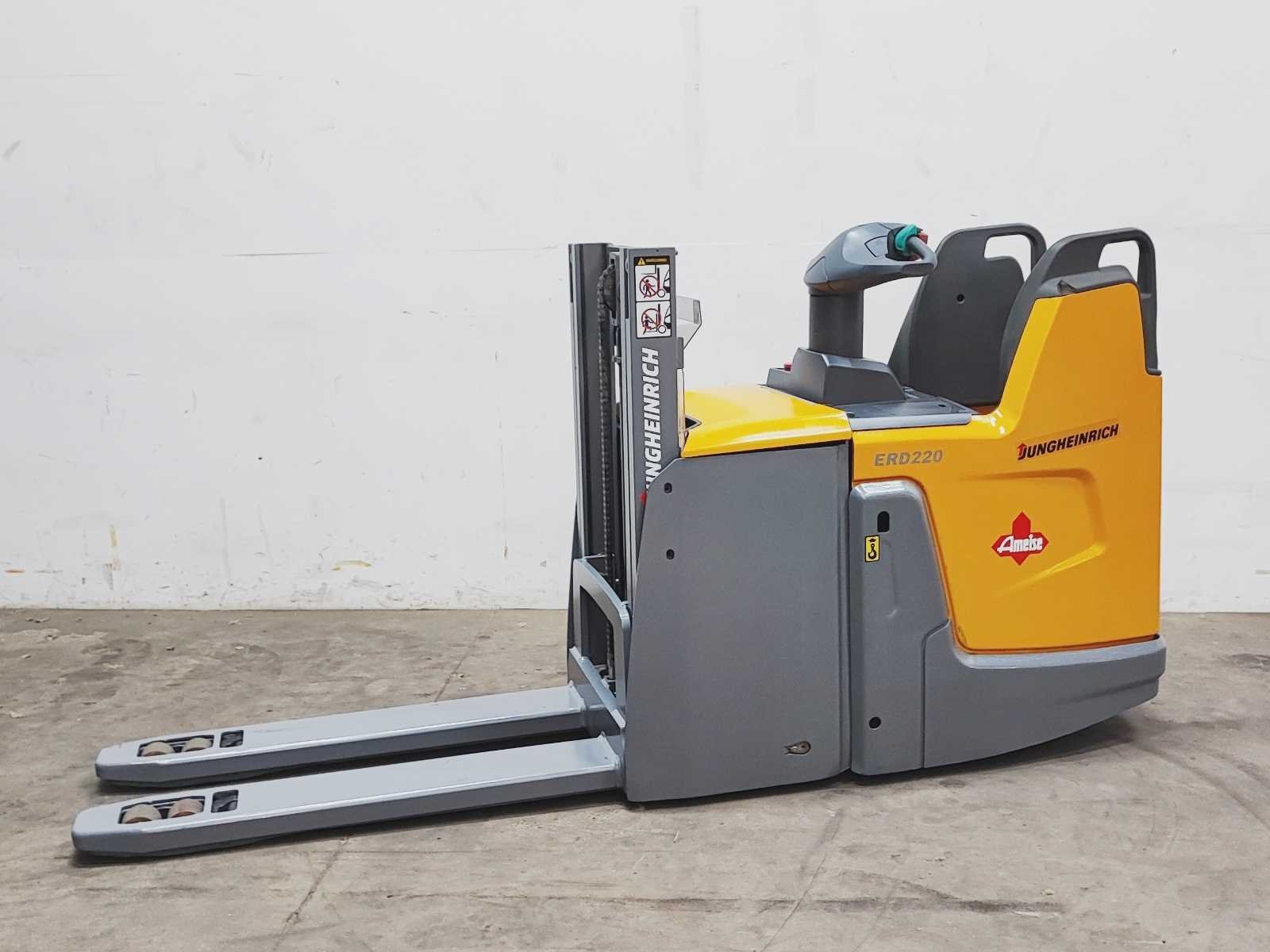 Jungheinrich ERD 220 elektro dubbelstock stapelaar v.v. duplo mast met dubbelstock functie, hefhoogte 200 / 1800 mm, hefvermogen 2000 / 1000 kg Merk: Jungheinrich Type: ERD 220 Bouwjaar: 2018 Serienummer: 90559128 Hefvermogen: 2000kg Hefhoogte: 1800mm Lepellengte: 1180mm Afgelezen urenstand: 8856 Eigen gewicht: 1190kg Minimale doorrijhoogte: 1270mm Totale afmeting L: 2700mm Totale afmeting Breedte: 740mm Totale afmeting Hoogte: 1270mm Meerij stapelaar: true Accu lader: true