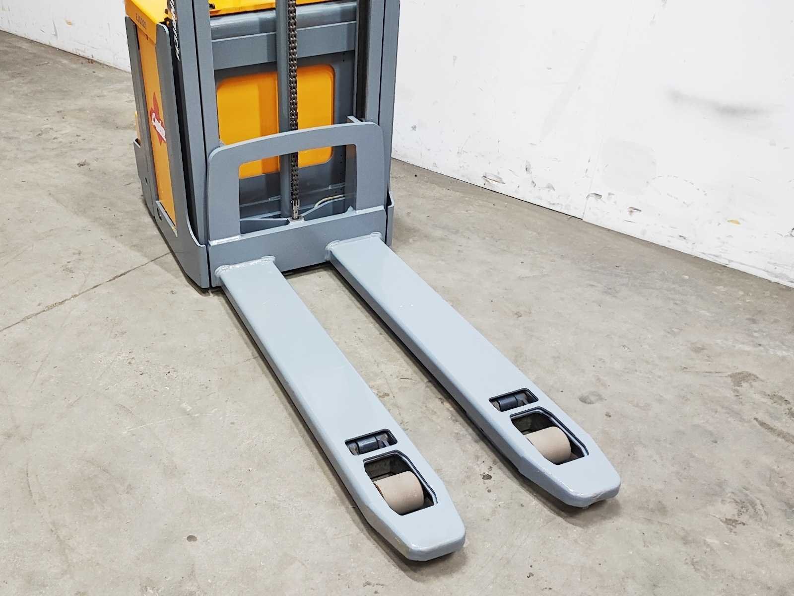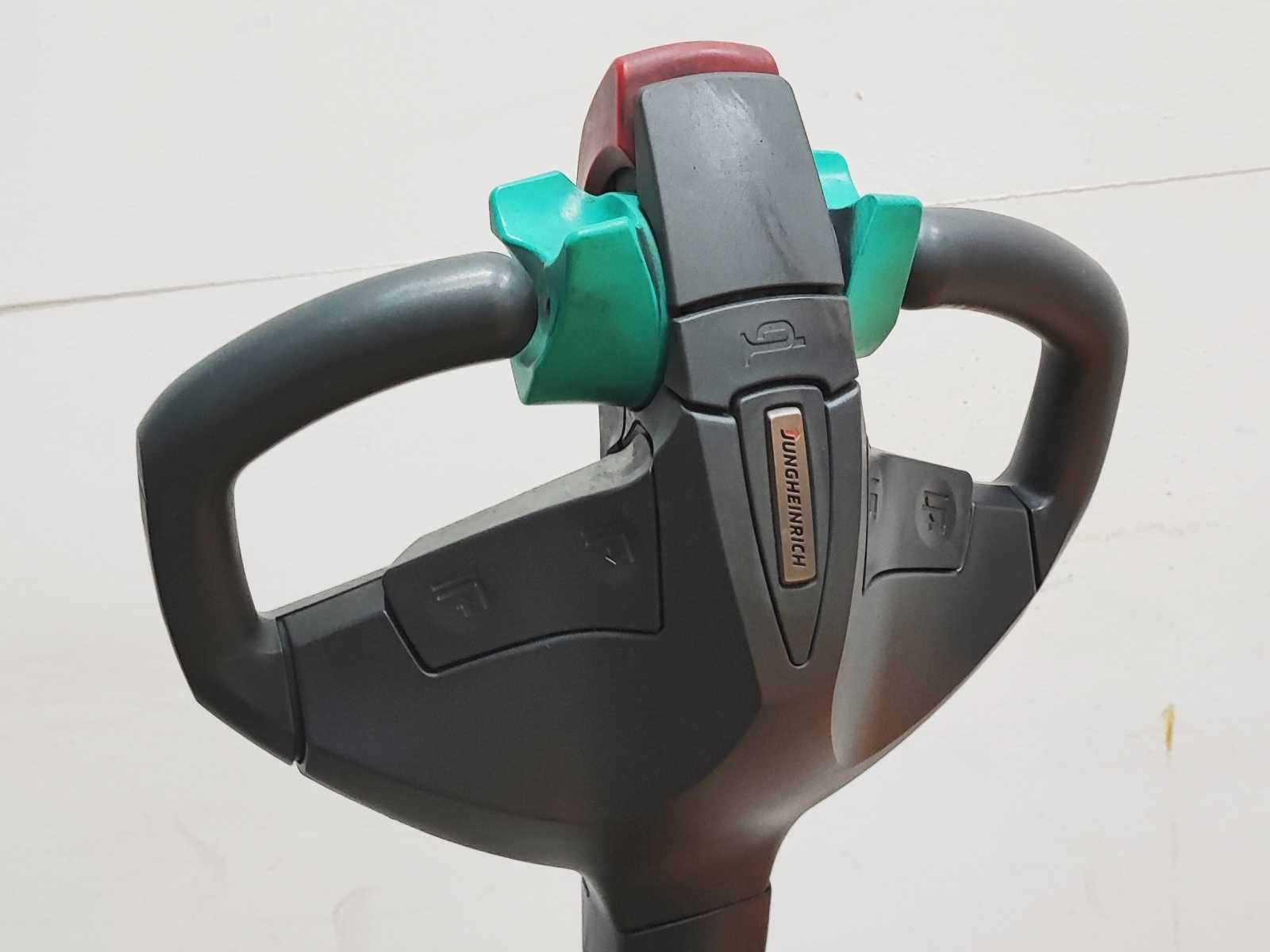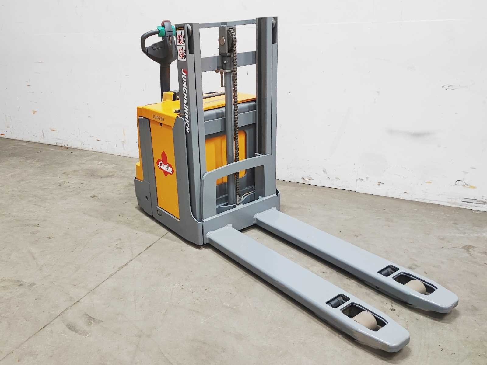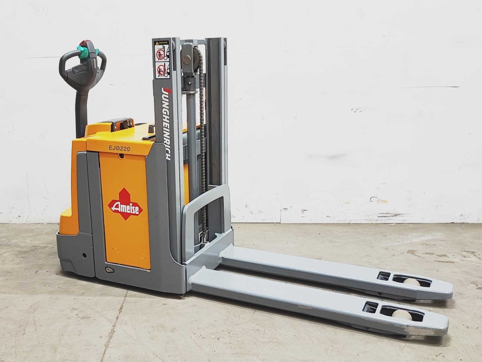 Jungheinrich EJD 220 elektro dubbelstock stapelaar v.v. duplo mast met dubbelstockfunctie, hefvermogen 2000 / 1000 kg, hefhoogte 210 / 1800 mm Merk: Jungheinrich Type: EJD 220 Bouwjaar: 2017 Serienummer: 90524977 Hefvermogen: 2000kg Hefhoogte: 1800mm Lepellengte: 1180mm Eigen gewicht: 1050kg Minimale doorrijhoogte: 1310mm Totale afmeting L: 2200mm Totale afmeting Breedte: 750mm Totale afmeting Hoogte: 1310mm Accu lader: true