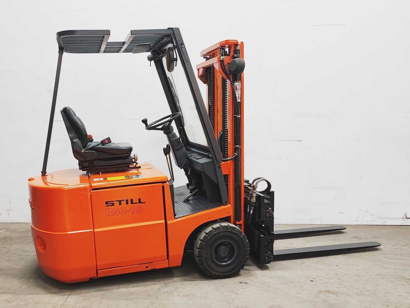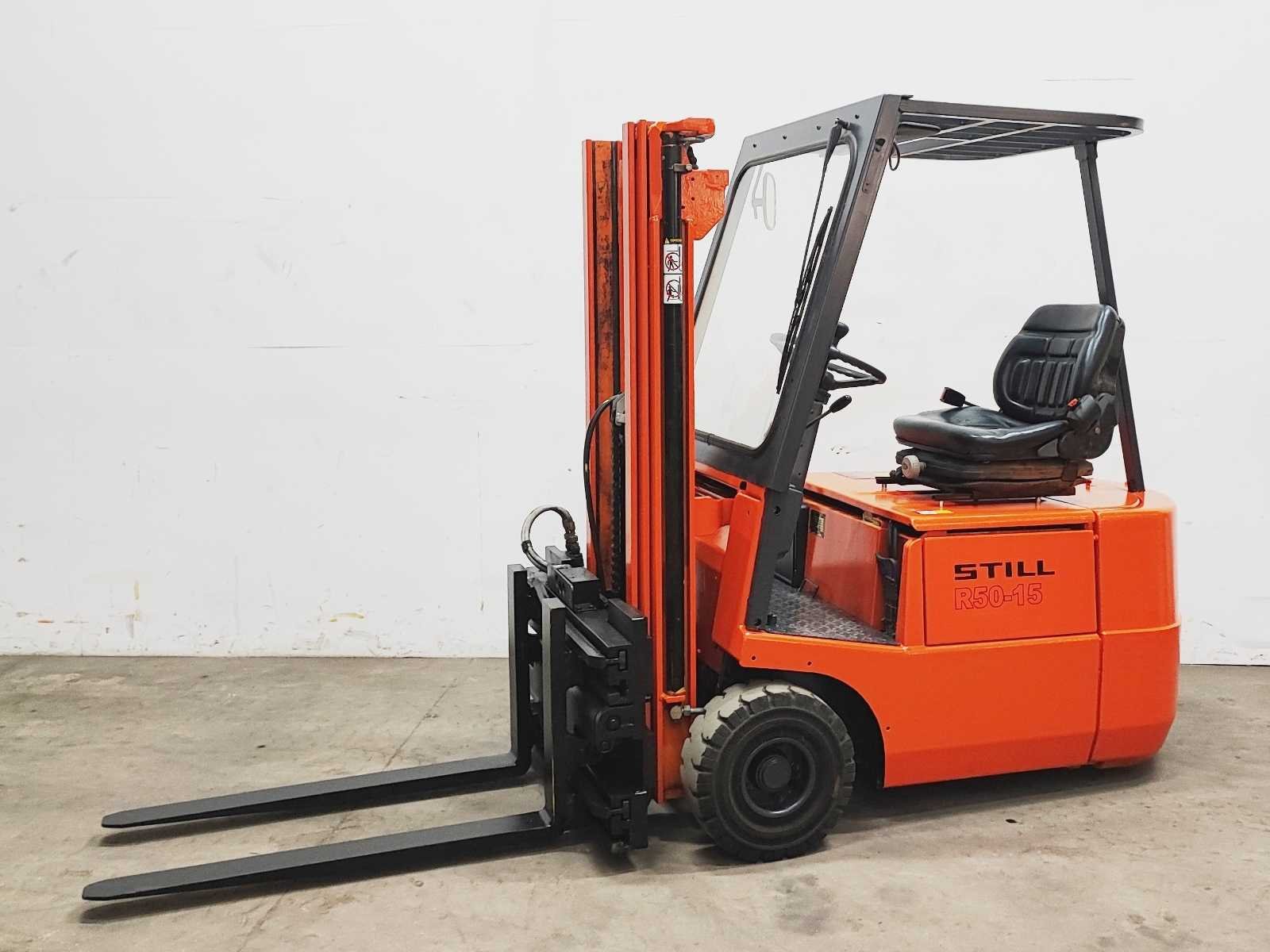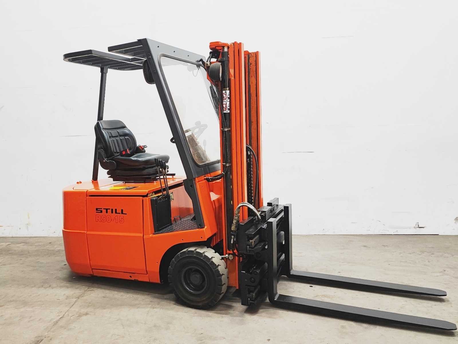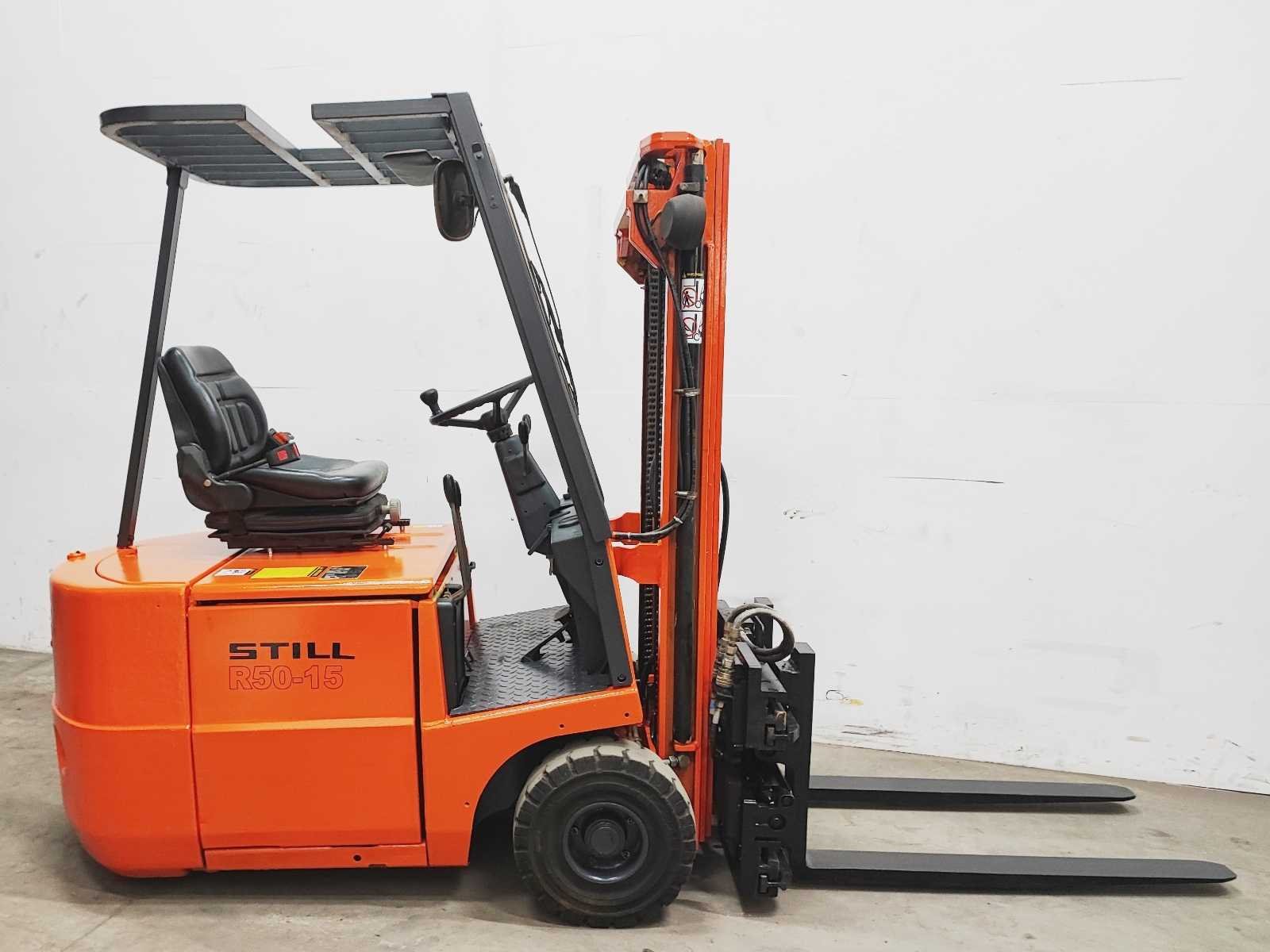 Still EFG 1.5 elektro vorkheftruck, v.v. hydraulische vorkenspreider 550 - 1720 mm Merk: Still Type: EFG 1.5 Serienummer: 50419439 Mast: Triplo freelift Aantal wielen: 3 Afgelezen urenstand: 2315 Accu lader: true Free-lift: true Hydraulisch verstelbare lepels: true Triple mast: true Eigen gewicht: 2900kg Hefvermogen: 1500kg Lepellengte: 1100mm Hefhoogte: 4100mm Vol rubber banden: true Minimale doorrijhoogte: 1950mm Totale afmeting L: 2000mm Totale afmeting Breedte: 1050mm Totale afmeting Hoogte: 1950mm