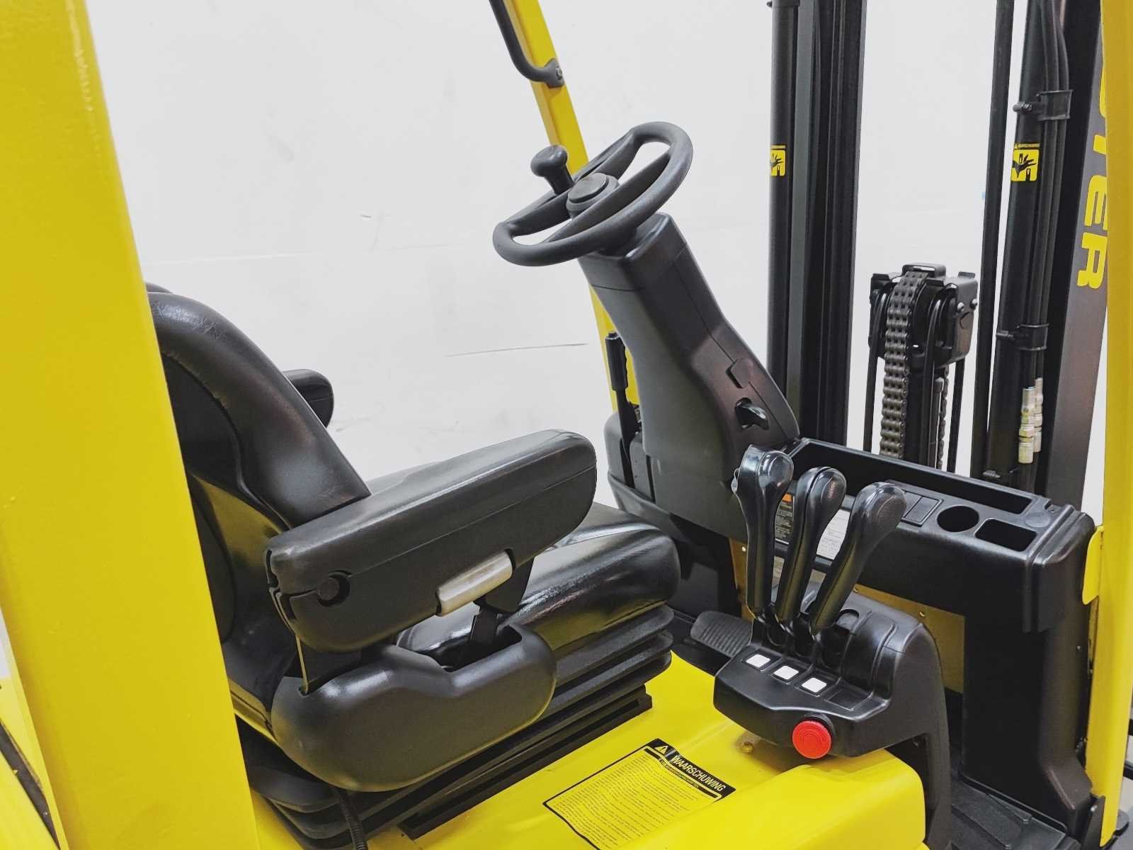 Merk: Hyster Type: A1.5XNT Bouwjaar: 2014 Serienummer: D203B01860M Mast: Duplo freelift Aantal wielen: 3 Afgelezen urenstand: 1046 Accu lader: true Free-lift: true Side-shift: true Duplex mast: true Eigen gewicht: 3700kg Hefvermogen: 1500kg Lepellengte: 1100mm Hefhoogte: 3315mm Vol rubber banden: true Minimale doorrijhoogte: 2140mm Totale afmeting L: 3000mm Totale afmeting Breedte: 1050mm Totale afmeting Hoogte: 2140mm