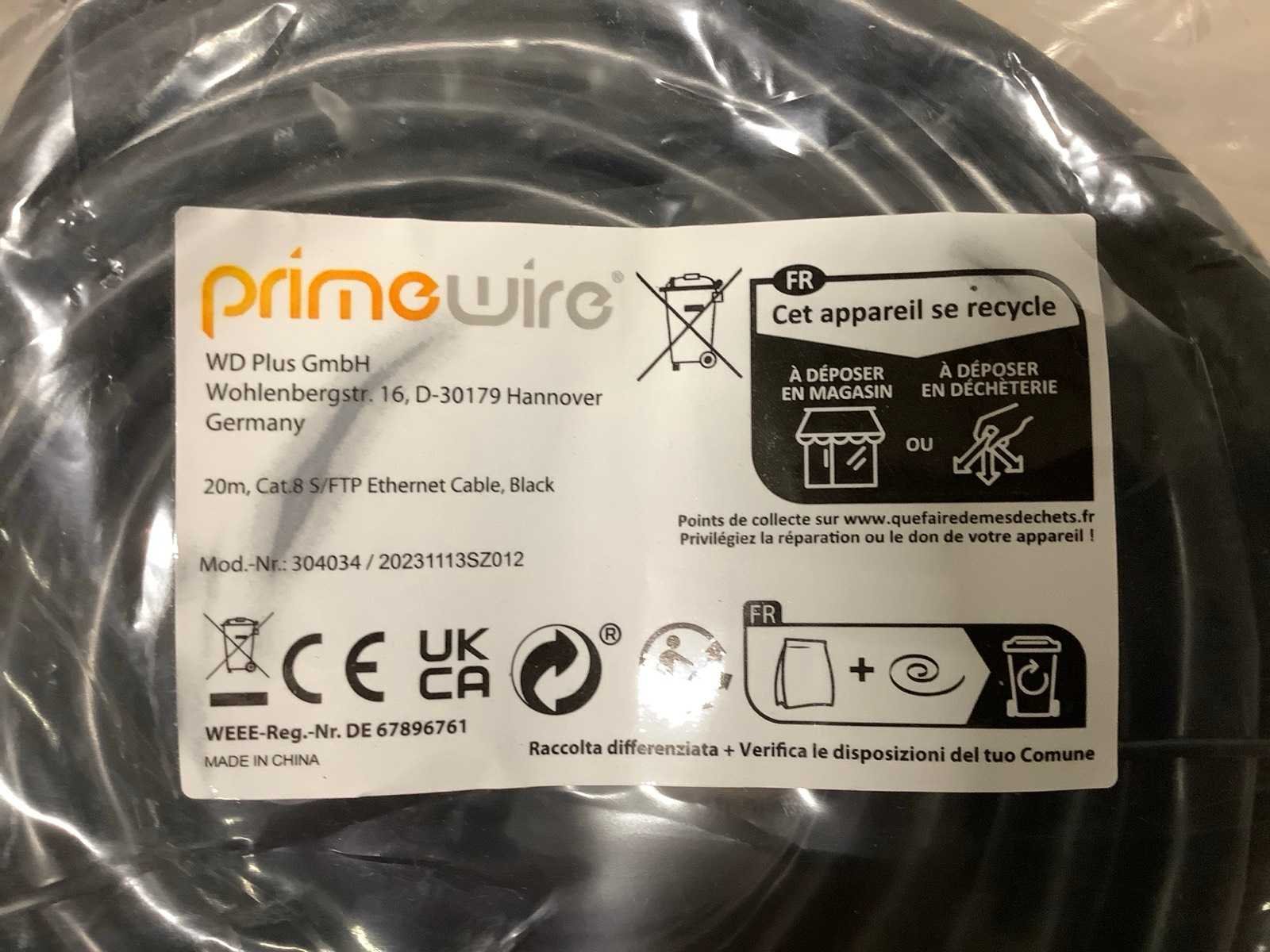 Let op: Dit betreft een kavel met 20 stuks cat8 netwerkkabel nieuw in verpakking Bezorgtermijn 14 dagen Merk: PrimeWire CAT8 netwerkkabel