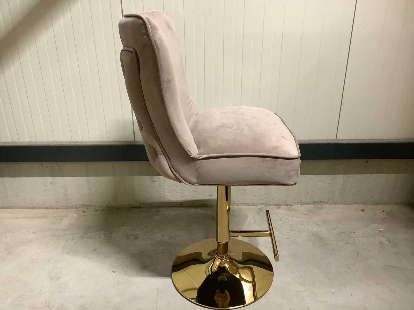 Dit betreft een product nieuw in doos. Let op: in hoogte verstelbaar. Bezorgtermijn 14 dagen Merk: Great Home Kleur: Taupe ( gold legs ) Lengte: 52cm Breedte: 61cm Hoogte: 110122cm Materiaal: Metaal / Stof
