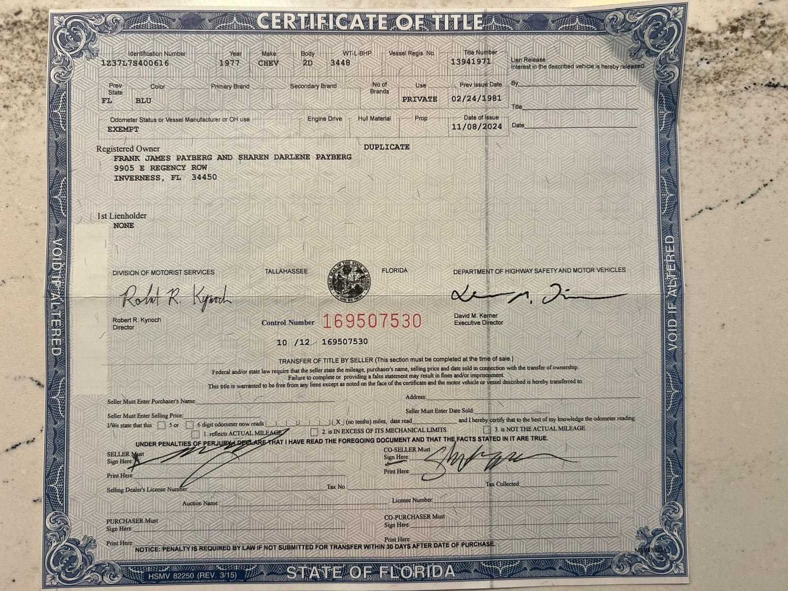 Bodem platen vervangen Chassis hard nieuwe uitlaten Nieuwe banden + uitgelijnd Nieuwe waterpomp Merk: Chevrolet Model: Corvette C3 Type: 5.7L V8 Bouwjaar: 1977 Brandstof: Benzine Afgelezen mijlenstand: 7074mi Chassisnummer: 1Z37L7S400616 Aandrijving: RWD Transmissie: Automaat Aantal deuren: 2 Aantal cilinders: 8 Nationaliteit documenten: Title florida