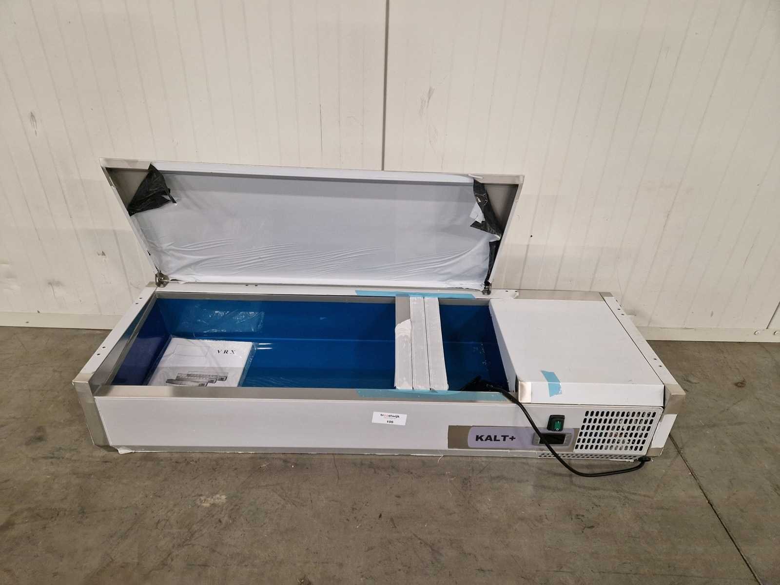 Tefcold saladière VK38-120 S/S LID, opzet koelvitrine met deksel, geschikt voor 3× GN 1/3 + 1× GN 1/2 bakken (exclusief GN-bakken). Netto inhoud: 40 liter, temperatuurbereik van +2 tot +10 °C met statische koeling (R600a), geen automatische ontdooiing. Voorzien van stelpoten, werkt op 230V, verbruik: 112 watt. Afmetingen: 120 x 39,5 x 26 cm (bxdxh), gewicht: 45 kg. Merk: Tefcold Type: VK38-120 S/S LID Materiaal: RVS Eigen gewicht: 45kg Ingebouwde koelcompressor: true Capaciteit.: 40Ll Digitale uitlezing: true Aansluiting: 230V Temperatuurbereik min.: +2°c Temperatuurbereik max.: +10°c Totale afmeting L: 120cm Totale afmeting Breedte: 39,5cm Totale afmeting Hoogte: 26cm