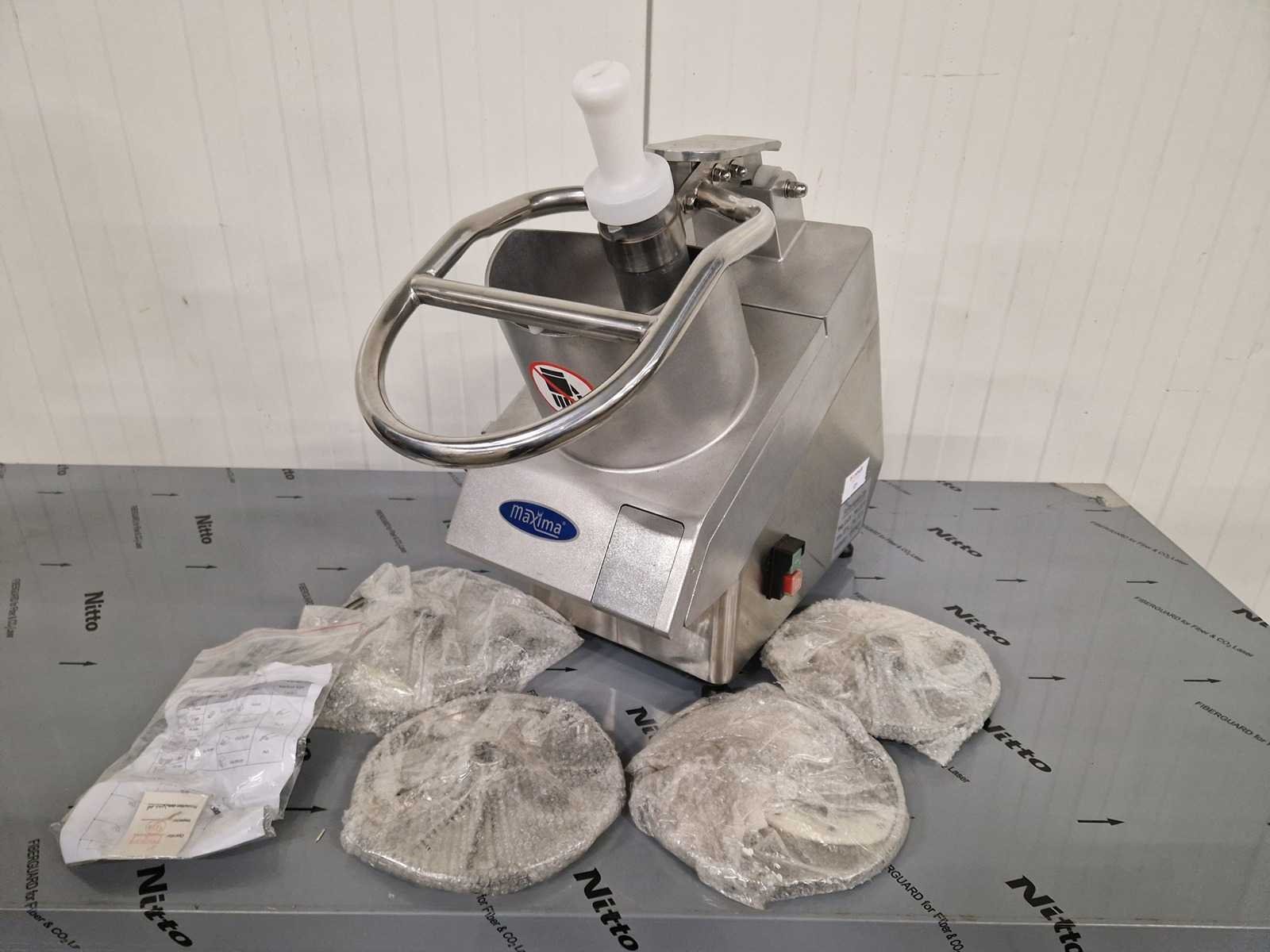 Maxima Snijmachine 09307000 – 0,8 kW Professionele groentesnijder met een capaciteit van 60 tot 450 kg per uur. Voorzien van 1 snelheid (350 tpm) en een royale invoeropening van Ø17 cm. Inclusief snijmessen van 1,5 / 3 / 5 mm en raspen van 3 en 5 mm. Compact model (28 x 65 x 55 cm), 230V, 0,8 kW, 27 kg. Let op: nieuw product met lichte transportschade. Merk: Maxima Model: 09307000 Product type: Snijmachine Lengte: 28cm Breedte: 65cm Hoogte: 55cm Materiaal: RVS