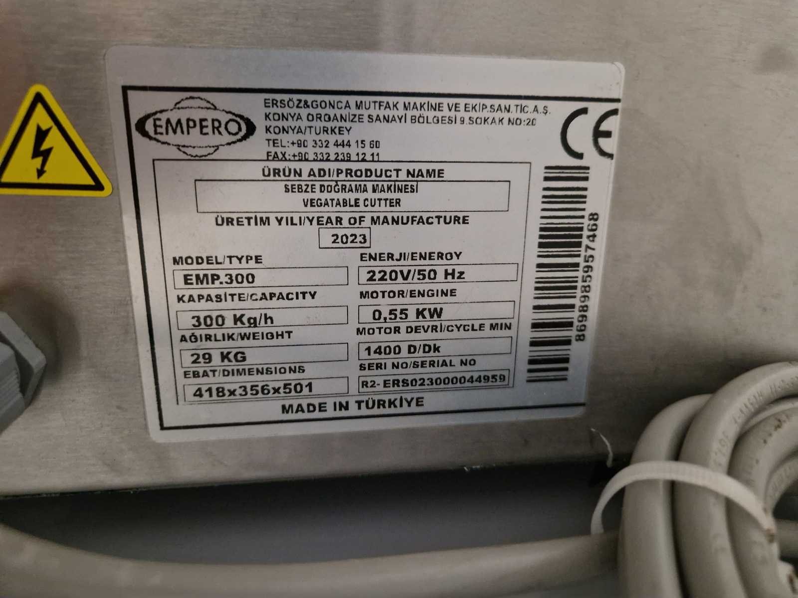 Empero Groentesnijmachine EMP.300 – 0,55 kW Krachtige en compacte groentesnijder geschikt voor professioneel gebruik. Uitgerust met een 0,55 kW motor en werkt op 220V. De robuuste RVS behuizing en stabiele constructie (41 x 35 x 50 cm, 29 kg) maken deze machine ideaal voor dagelijks gebruik in de horeca. Merk: Empero Model: EMP.300 Product type: Snijmachine Gewicht: 29kg Lengte: 41cm Breedte: 35cm Hoogte: 50cm Materiaal: RVS