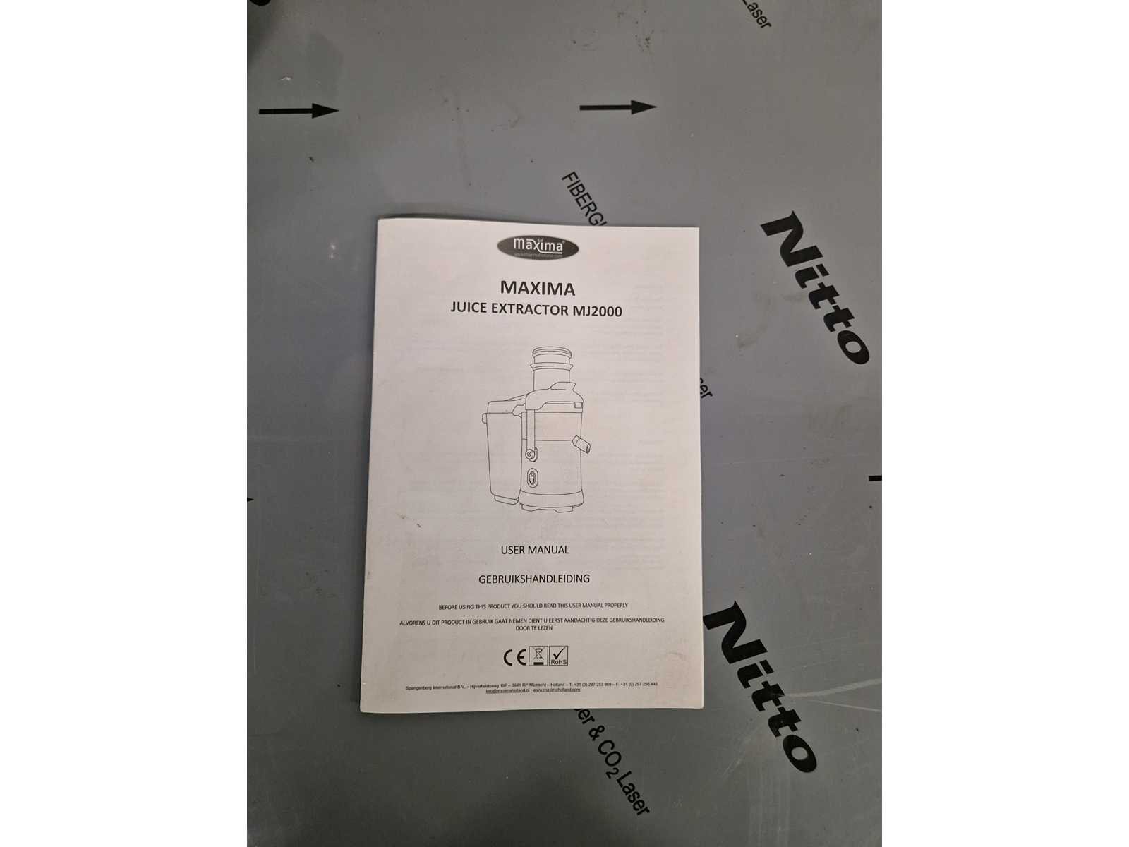 Sapcentrifuge MJ-2000 | Citruspers, groente- en fruitsnijder De Maxima MJ-2000 is een krachtige en veelzijdige sapcentrifuge, geschikt als citruspers én als snijder voor zowel harde als zachte groenten en fruit. Dankzij de ruime inhoud van 5 liter is deze machine ideaal voor gebruik in de horeca, sapbars en andere professionele keukens. Werkt op 230V met een vermogen van 0,8 kW. Compact ontwerp van 25 x 45 x 52 cm (BxDxH) en een gewicht van 9 kg. Eenvoudig te reinigen door afneembare onderdelen en voorzien van een veiligheidsschakelaar voor veilig gebruik. Merk: Maxima Model: Sapcentrifuge/juicer Product type: MJ-2000 Gewicht: 9kg Lengte: 25cm Breedte: 45cm Hoogte: 52cm