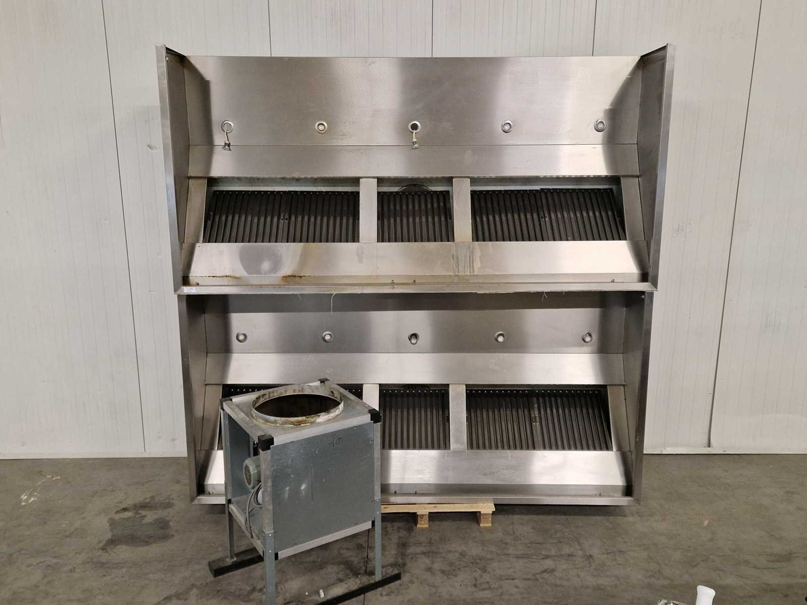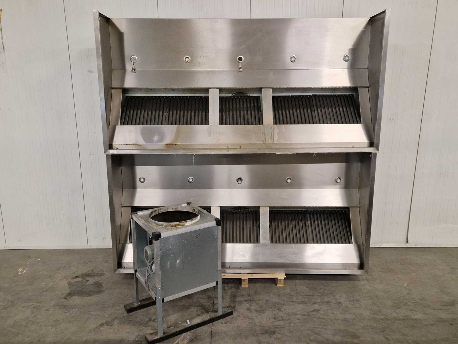 Afzuigkap – Eilandmodel 300 cm Grote eilandmodel afzuigkap met een breedte van 300 cm, ideaal voor centraal geplaatste kookopstellingen in professionele keukens. Voorzien van 10 filters, verlichting en wordt geleverd inclusief motor (los). De kap is reeds gedemonteerd en bestaat uit twee delen, wat het transport vergemakkelijkt. Afmetingen: 300 x 290 x 60 cm (BxDxH) Aansluiting: 230V Model: Afzuigkap Product type: Eilandmodel Lengte: 300cm Breedte: 290cm Hoogte: 60cm Materiaal: RVS